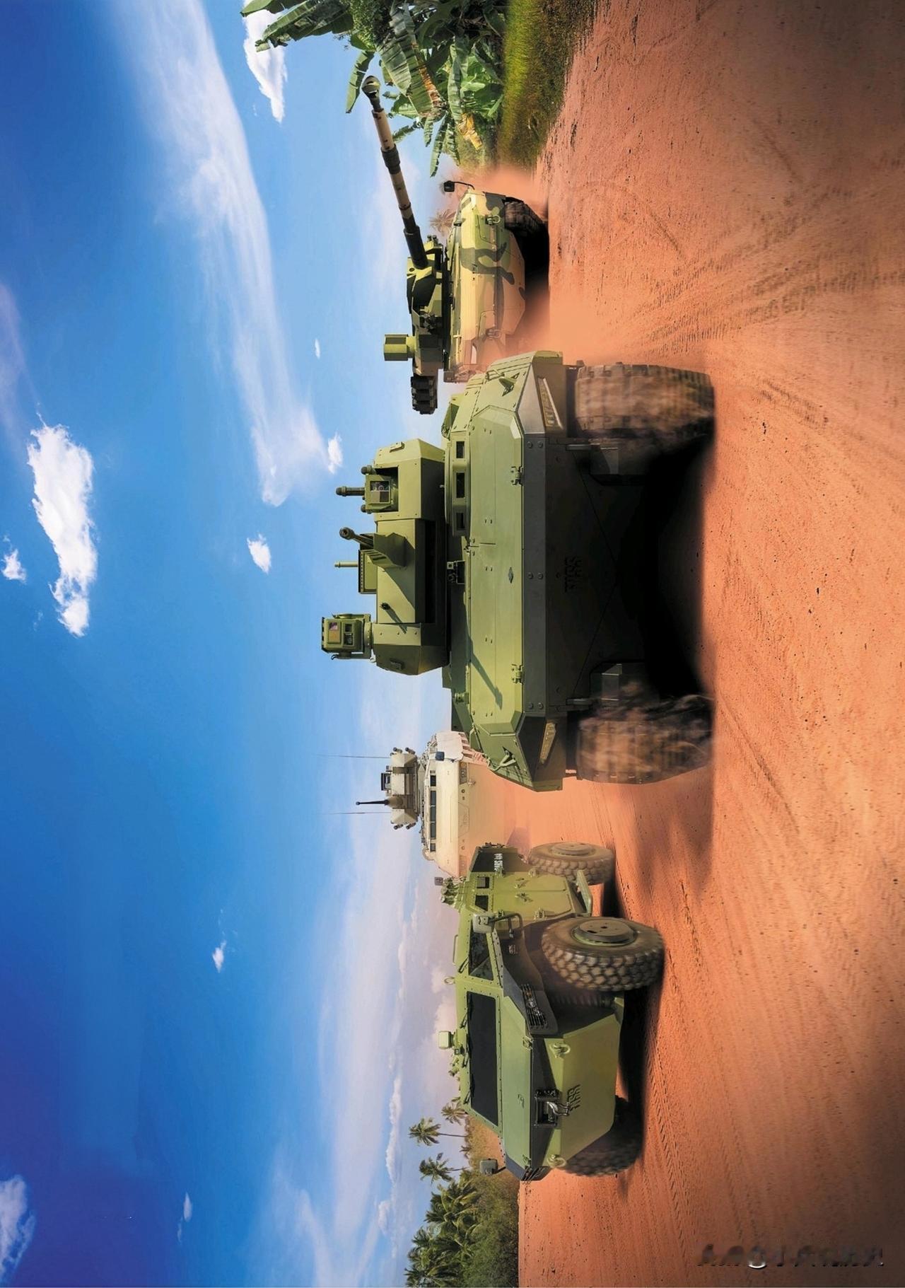 土耳其FNSS防务系统公司开发的“豹”4X4轮式装甲车、“豹”8×8轮式装甲车、“卡普兰”20步兵战车和MMWT中型坦克(从左至右)