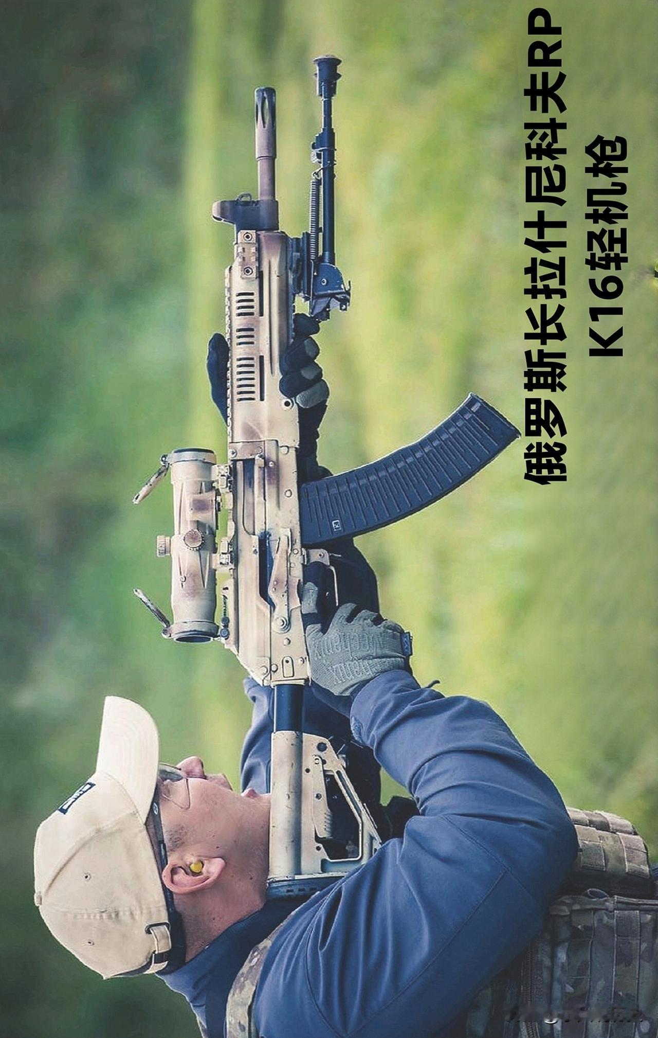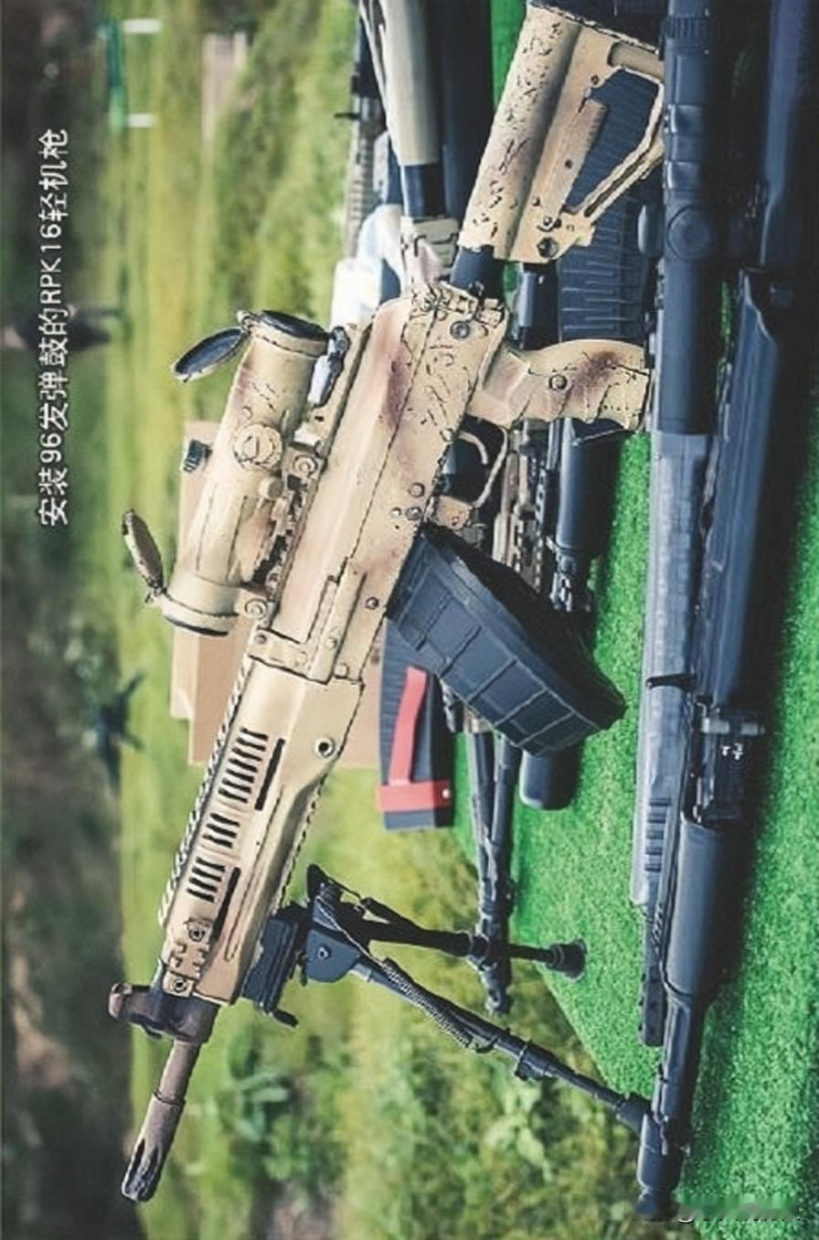 俄罗斯长拉什尼科夫RPK16轻机枪 毛子新出的RPK16班组支援枪,打算把老款RPK74给换掉。 这枪可跟以前苏式武器那种笨重的路子不一样,主打一个轻巧顺手。枪管从RPK74那590毫米的粗重款,改成了370毫米的短款。 原来一卡就掉的机匣盖,换成了固定款,还加厚了壁厚,顶上直接装了皮卡汀尼导轨。 以前木头做的上下护手,改成了一整块金属的,护手顶部有条长导轨,左右和下边各带短导轨,装瞄具、握把这些配件特别方便,两脚架就是从下边导轨装上去的。 照门安在机匣盖后上方,准星则设在导气箍上边。枪托用的是和AK400自动步枪一样的伸缩款,能装30发弹匣或者96发弹鼓,也能像图里那样用RPK74的45发长弹匣。整枪从枪托、机匣、护手到瞄准镜,全都是沙漠色的涂装。