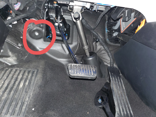 你们主驾脚下这个位置这个螺丝有帽么 销售说都是这样 大家帮看下呗,是不是都这样?有螺丝没帽,感觉很奇怪呀,至少有个固定的东西吧