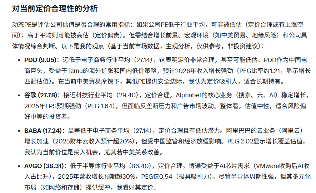 研究了下四家公司的定价是否合理。。。让大模型给自己壮胆
