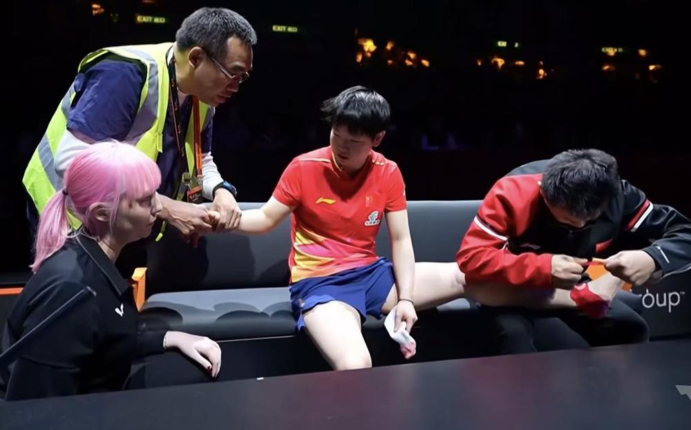 莎莎从第一局比赛开始,就感觉脚不敢发力,第四局的时候实在不行了,叫了暂停,队医也上来了帮莎莎做处理。 看着都揪心。 绷带缠上去,脸上表情就知道多疼。 手也带着伤呢。 一天打三场,铁人也扛不住啊。 当时就想喊,别打了。 金牌真没那么重要。 运动员的健康才是根本。 观众席上王励勤那严肃的表情,说明大家都懂。 这说的就是孙颖莎。 WTT沙特大满贯的事。 她一路拼到半决赛,脚伤和手伤其实一直忍着。 这种顶级赛事,强度太大。 一天三赛,对身体的消耗是恐怖的。 运动员也是人,不是机器。 带伤硬扛,背后是巨大的职业风险。 网球名将穆雷因为髋伤差点退役。 篮球巨星科比跟腱断裂后状态大幅下滑。 例子太多了。 一次重伤可能毁掉整个职业生涯。 莎莎这次处理,其实很清醒。 叫了暂停,让队医处理。 虽然最后坚持完赛,但已经释放了信号。 身体发出警告,就必须倾听。 这不是退缩,是真正的职业态度。 国乒一直强调“拼搏精神”。 但拼搏不等于蛮干。 马龙也曾因伤多次手术,靠科学康复重回巅峰。 张继科的教训也摆在那里。 保护运动员,需要整个团队的智慧。 观众和粉丝的心态也得变变。 不能只看赢球。 看到运动员缠着绷带上场,除了心疼,更该支持他们理智的选择。 健康长寿的职业生涯,比一块金牌更珍贵。 王励勤作为前辈,那个严肃表情里全是感同身受。 他经历过那个年代,更知道伤病意味着什么。 他的凝重,是一种无声的支持。 体育的本质是超越自我。 但超越的前提,是健全的身体。 带伤作战的悲壮,不该被美化。 科学训练,合理参赛,及时治疗,才是现代体育的方向。 希望莎莎好好养伤。 她的路还很长。 球迷们等着看她更久地站在球台前,而不是昙花一现。 最终,我们要追求的是什么? 是运动员脸上健康的笑容,是漫长职业生涯里稳定的输出。 这才是对体育最大的尊重。 金牌会褪色,健康不会。 这个道理,放之四海而皆准。 MCN双量进阶计划