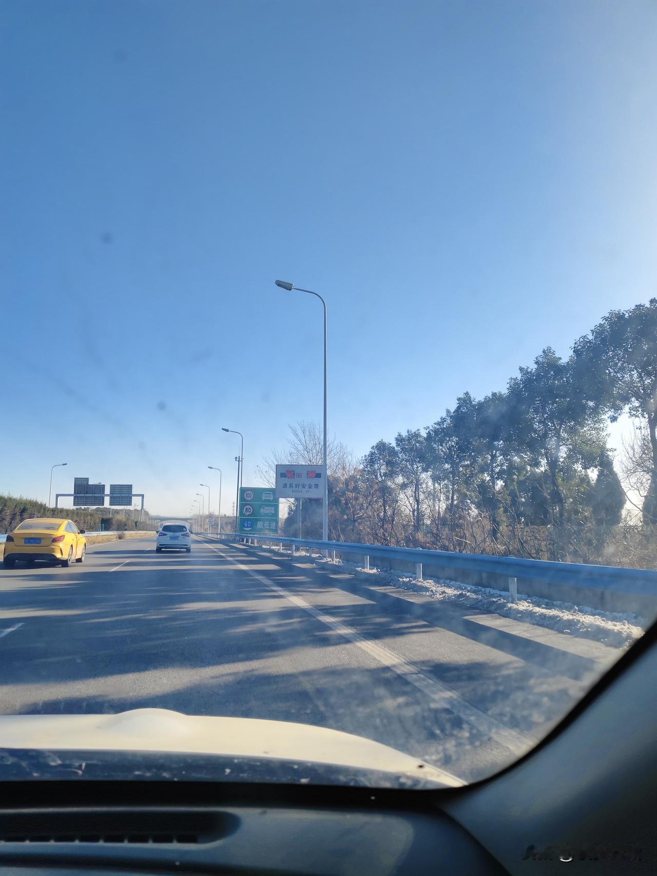 冬日归途 车窗框住一整片澄澈的蓝,冬日的阳光毫无遮拦地洒在公路上,把柏油路面晒得暖融融的。道路向远方笔直延伸,黄色的轿车与白色的小车在前方不疾不徐地行驶,像是给这条长路缀上了灵动的注脚。 路边的树木褪去了繁叶,枝桠疏朗地映着蓝天,护栏边还留着薄薄的残雪,在阳光下闪着细碎的光。路牌在远处立着,指引着前行的方向,风从车窗缝隙钻进来,带着冬日特有的清冽。这一刻,赶路的匆忙都被这明朗的光景抚平,只觉得前路漫漫,却也温柔。 要不要我再为你写一篇更文艺风格的短散文,让这段路的画面感更浓?