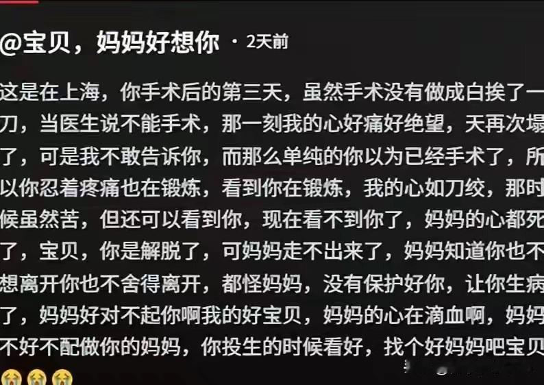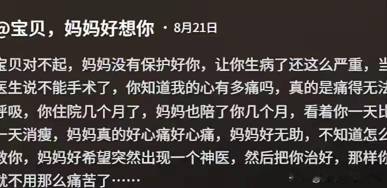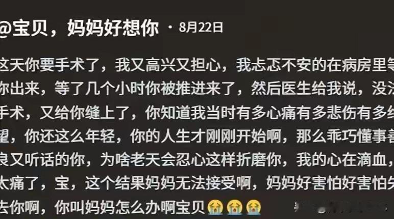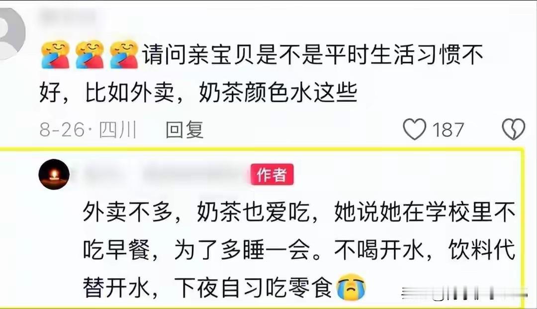 年轻的生命也无法抗衡!25岁的女孩不幸离世,令人心碎的死因引发深思,母亲悲痛难忍 “年轻就是资本”,这句话很多人都说过,但生命的宝贵远远超过任何“资本”。生命只有一次,绝不能掉以轻心! 25岁的她,正是人生最美好的时光,充满希望,期待着亲情、爱情和友情。然而,江苏一位被母亲亲切称作“宝贝”的美丽女孩,却在这个花一样的年华突然离开了人世。 她的离去,让母亲肝肠寸断,也让我们开始反思:年轻人身边隐藏的危机到底有多严重?她的故事,是一个沉重的警钟,提醒我们:年轻不代表可以忽视健康。 一篇悼念的帖子在网络上引起了广泛关注。发帖的母亲满眼泪水,用“宝贝”这个昵称缅怀刚刚离去的女儿。照片中,是女儿术后第三天的模样——虽然身体虚弱,但依然坚持康复训练,展现出对生命的执着和不舍。 然而,天意无情,病魔最终夺走了这个年轻的生命。母亲始终不愿公开女儿的真实姓名,只用“宝贝”来寄托爱与怀念。从聊天截图可以看出,女儿在一个充满关爱和温暖的家庭中长大。 即使工作再忙,母亲也会亲自去接女儿下班,回家后还会为她准备丰盛的饭菜。然而,温暖的家庭也无法阻挡病魔的侵袭。今年年初,女儿被诊断出“印戒细胞癌伴皮革胃”,已是晚期。这意味着治疗手段有限,生命倒计时已开始。 从入院到离世,仅仅半年时间,这位25岁的女孩就走完了人生的最后一段旅程。在半个月前,她永远地与母亲告别。 令人疑惑的是:如此年轻的生命,怎么会患上如此严重的癌症?母亲悲痛中透露,女儿的病与她年轻时养成的不良生活习惯密不可分。 “宝贝”从学生时代起,就有赖床的习惯。每天早晨,闹钟响了,她总会念叨“再睡五分钟”,然后沉沉入睡,结果经常错过早餐。这样的习惯,你是否也曾有过?你是否也曾为了多睡几分钟,跳过早餐? 她宁愿少吃一顿,也不愿早起十分钟煮个鸡蛋。中午多吃点,似乎就能弥补早餐的损失。可是,事实证明,早餐绝非可有可无的“选择”,它是身体的“启动键”,关系到健康的根基。 医学研究显示,长期不吃早餐会导致胃酸持续分泌,胃黏膜受到侵蚀,久而久之可能引发胃炎、胃溃疡甚至胃癌。年轻时的疏忽,可能在未来酿成无法挽回的悲剧。 更令人担忧的是,她的生活习惯中,另一个伤害身体的因素——大量饮用奶茶和碳酸饮料,几乎没有喝过白开水。母亲多次劝说她少喝点,但她总笑着说:“白开水没味道,饮料才解渴。” 你是否也曾被冰凉的可乐或香甜的奶茶吸引?这些“快乐水”背后,隐藏着多少糖分的危机?一杯奶茶的糖分,早已超出世界卫生组织的每日推荐摄入量。长时间摄入过多糖分,会导致血糖波动、胰岛素抵抗,甚至糖尿病和脂肪肝。 身体的“清道夫”——水,才是最健康的选择。它帮助代谢废物、调节体温,维持身体正常运转。可惜,许多年轻人用含糖饮料代替白水,逐渐侵蚀健康。 夜晚熬夜,更是现代年轻人的“习惯”。刷手机到深夜、加班到凌晨、周末补觉……这些行为让身体无法得到充分休息。夜晚是身体修复的黄金时间,熬夜无异于透支生命。 “宝贝”的悲剧,提醒我们:无论多年轻,身体都不会说谎。那些看似微不足道的生活习惯——不吃早餐、喝糖饮料、熬夜——都在逐渐侵蚀健康的根基。 我们身边也有许多年轻人,和“宝贝”一样,赖床不吃早饭、喝奶茶、熬夜到深夜。他们天真地以为“年轻就是资本”,身体可以扛得住一切。殊不知,再坚强的“电池”,也会因不断的透支而耗尽。 因此,健康没有“年轻豁免权”。每一个微小的习惯,都可能在未来带来无法挽回的伤痛。我们应从现在开始,珍惜身体,关注生活细节。 “宝贝”的离去,是一个家庭永远的伤痛。愿她在另一个世界远离病痛,安然长眠。更希望所有年轻人都能从她的故事中吸取教训:生命宝贵,不能轻视任何细节。 请记住:别再为了多睡几分钟而跳过早餐,不要用奶茶和汽水代替清水。真正爱自己的人,是懂得用健康守护生命的每一天。从一日三餐、一杯清水开始,用心呵护自己的身体。这不仅是对自己负责,也是对深爱你的家人最深的回报。 生命只有一次,不能挥霍,也不能侥幸。珍惜每一个健康的细节,让生命绽放出最灿烂的光彩。