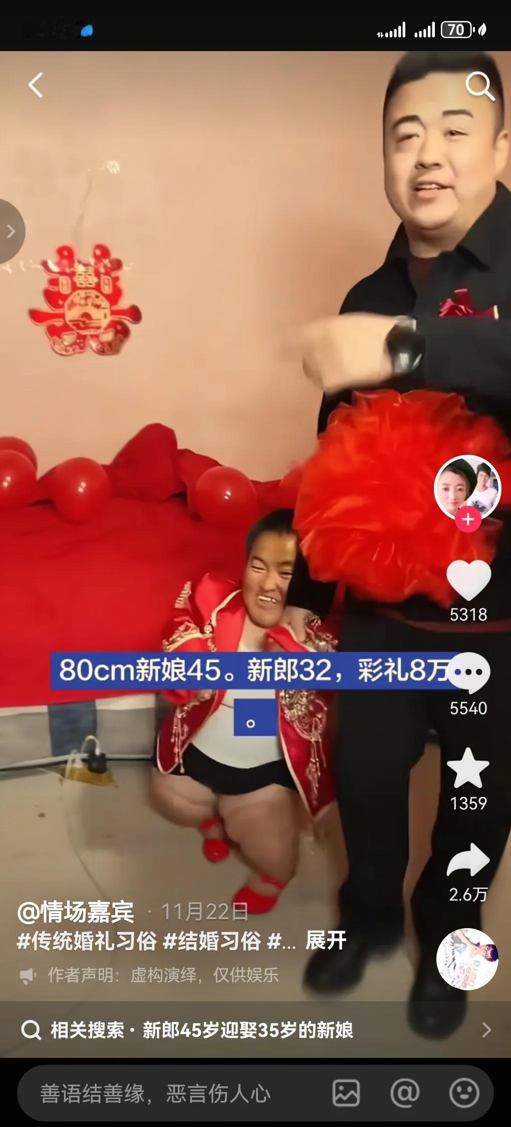 这个男人长得也不差,女人配不上他,看着他们都开心的笑着,也是你情我愿,双向奔赴的,缘分天注定。 女人任何年代都是香浡浡,没有剩女,只有剩男。