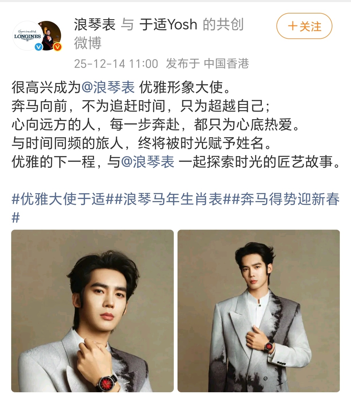 于适 🈚️考察期空降浪琴表优雅大使!时隔八年浪琴表全球最高title给了于适👍