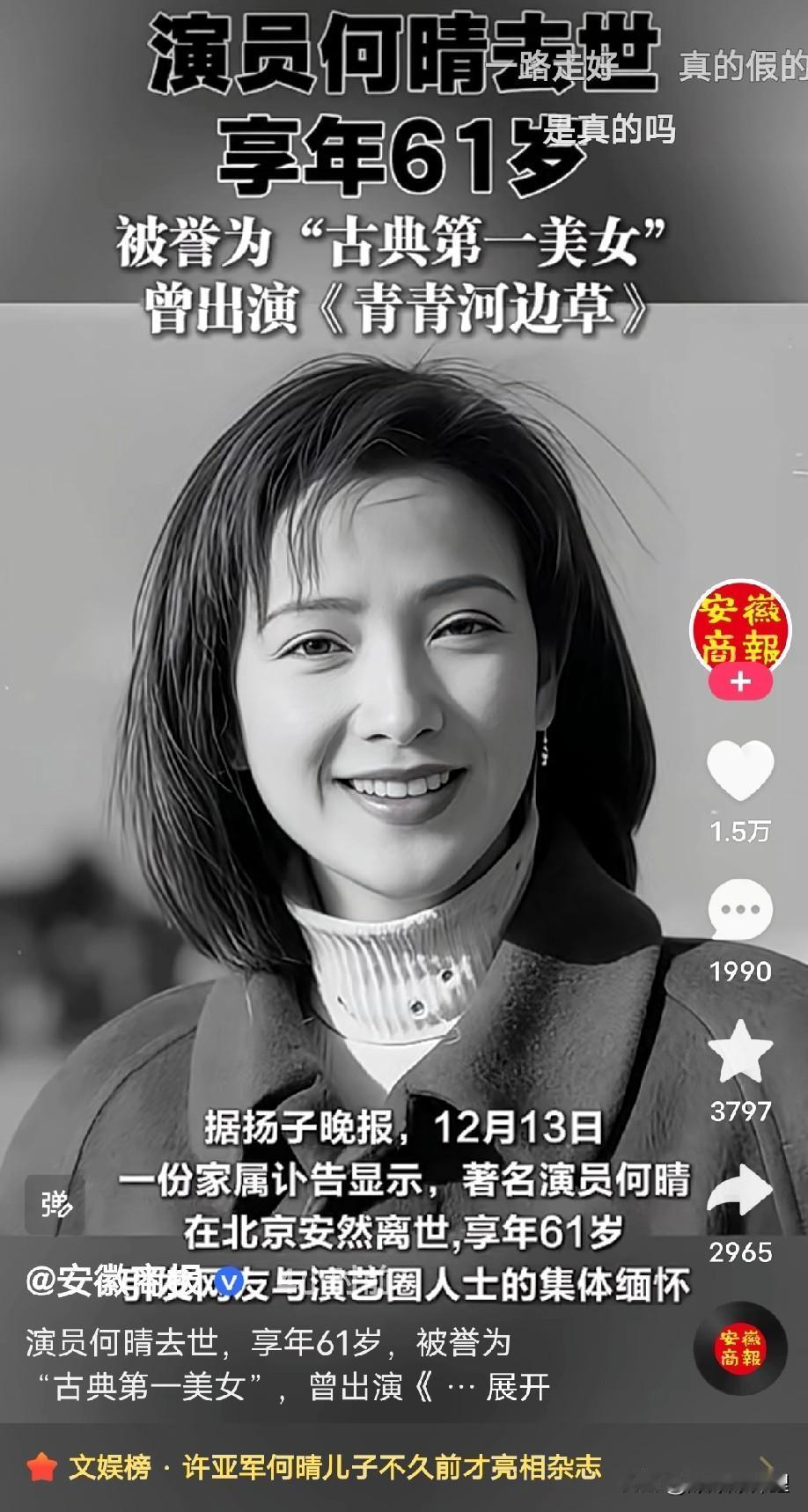 刷到何晴也没了的消息,心里真是不是滋味。 前脚刚传朱媛媛,后脚又是何晴,这两位可都是咱们那时候顶尖的大美人。 真是应了那句红颜薄命,老天爷怎么专挑好看的人下手? 有时候我也瞎琢磨,要是人长到二三十岁颜值巅峰就定格该多好。 没病没灾,脸也不垮,一直活到八九十岁,到时候两腿一蹬直接走,也不用受罪连累孩子。 可惜啊,人间哪有这等好事。 只要吃五谷杂粮,这就是个肉体凡胎,谁也逃不过生老病死这一关。 活着就是在跟生活斗,跟病痛斗。 咱们普通人也没别的招,趁着这就几十年,对自己好点吧,毕竟除了身体,啥也不是你的。 愿逝者安息。