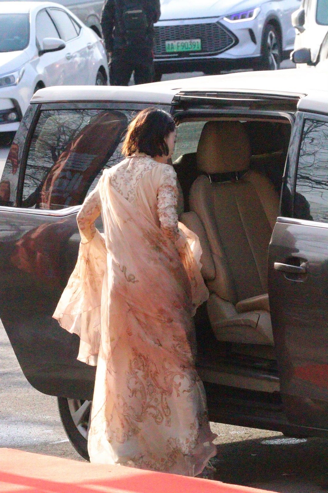 周冬雨 裙子卡住了看得出她是公主!!周冬雨下车裙子卡住也出神图,好美好仙,期待这个周五晚高疯