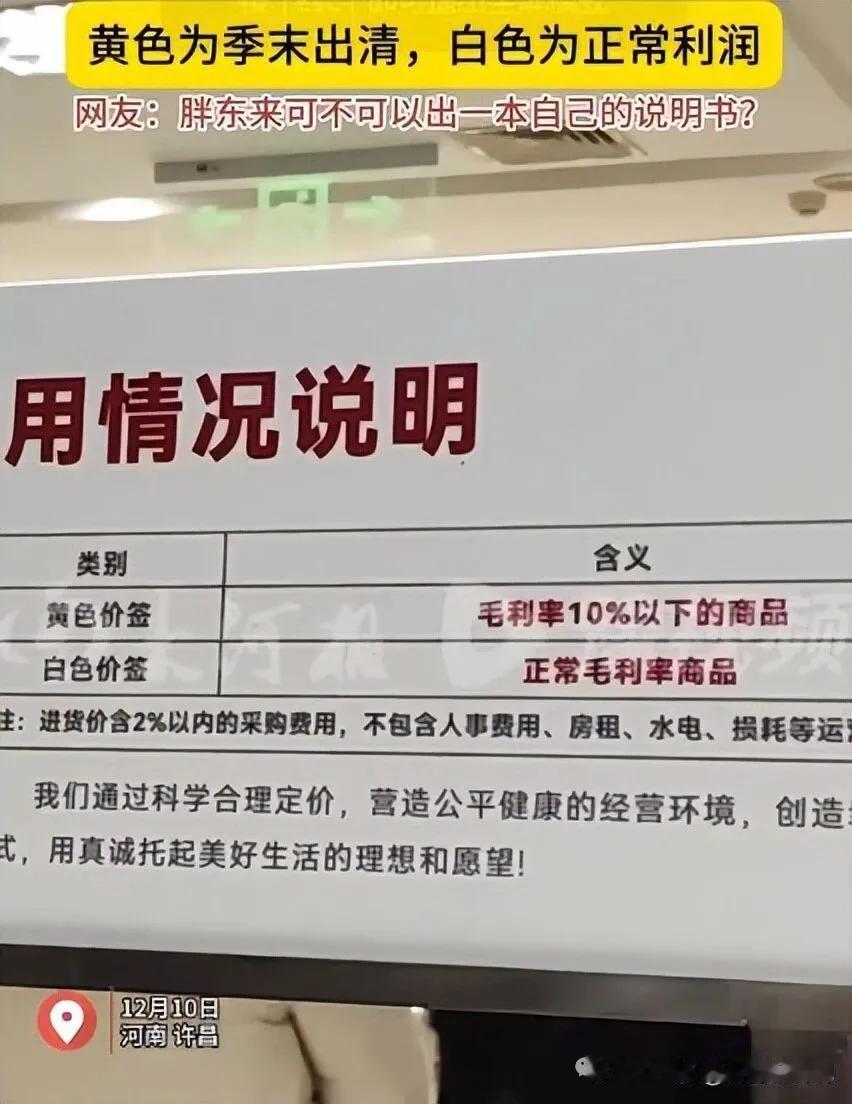 胖东来又一次刷新了我对商业的认知。近日记者探访发现,胖东来一件89元的卫衣毛利润才3.4元,毛利率约3.8%;一款进价430元的羽绒服,售价597元,毛利率也严格控制在28%以内。 要知道,传统服装行业毛利率普遍在60% - 70%,部分知名品牌售价更是成本数倍。胖东来却把自营服装毛利率上限定在30%,还推出毛利率仅0.06%的引流款。这种主动让利的做法,看似违背商业逻辑,却让复购率超90%。这说明,真心为消费者着想,才能赢得信任和长久的生意。