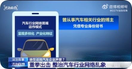 【央视起底汽车行业网络黑嘴运作模式!】12月12日,中央电视台《法治在线》栏目在官方微博连发多条视频,起底汽车行业网络黑嘴运作模式。官方指出,这些运作模式呈现多样化产业化特征。这些模式主要有发黑稿、敲竹杠、扮专家、搞带货、搞对立、泼脏水等,从制造负面舆情勒索“保护费”,到以“专业”之名行诋毁带货之实,再到煽动粉丝“饭圈化”互撕。对于上述的这些行为,官方表示可能一夜之间也会把一个企业长期维护的企业形象破坏,对企业的商誉带来很大的损失。同时指出企业间的互黑也会带来一种反噬,在舆论方面投入过多的资源,在一定程度上分散了企业谋心发展的专注力。这些网络乱象已经严重破坏网络生态秩序,已严重破坏市场公平竞争环境、污染网络生态,必须以零容忍态度严厉打击。车评观察大v聊车新能源汽车