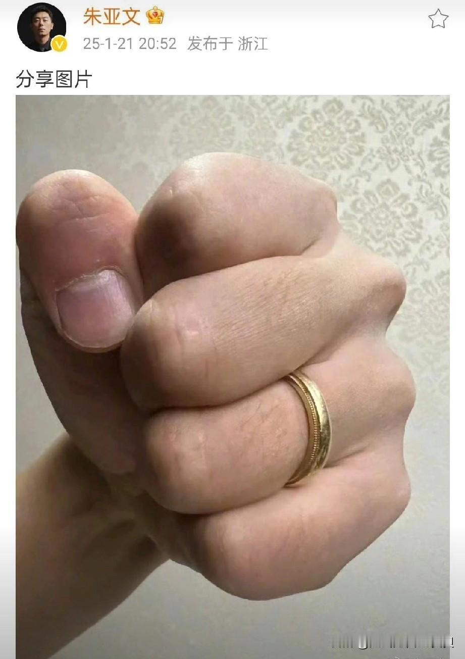 年初的时候为什么会传出朱亚文离婚呢? 翻看他老婆的相册,几乎每张照片上,无名指都戴着这个💍,已经持续好多年了。 跟朱亚文年初晒出的无名指💍,看起来是情侣款。 估计是他老婆的状态看起来不太好,网友才会猜测是因为婚姻危机影响的吧。 但是他老婆好像一直都是淡淡的这种清冷美人。如今年龄大了,又不化妆,看起来就憔悴了。 所以才会让网友多想吧。