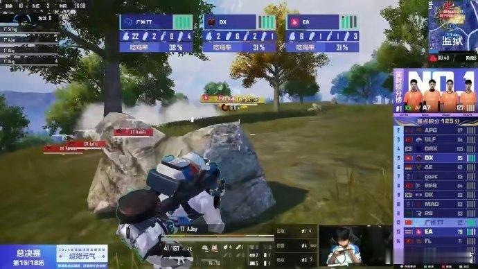 TT世界赛决赛吃鸡广州TT在2025和平精英全球总决赛Day3第三场打得超稳,决胜圈在监狱附近和另外两队正面交锋,精准把握战局果断出枪