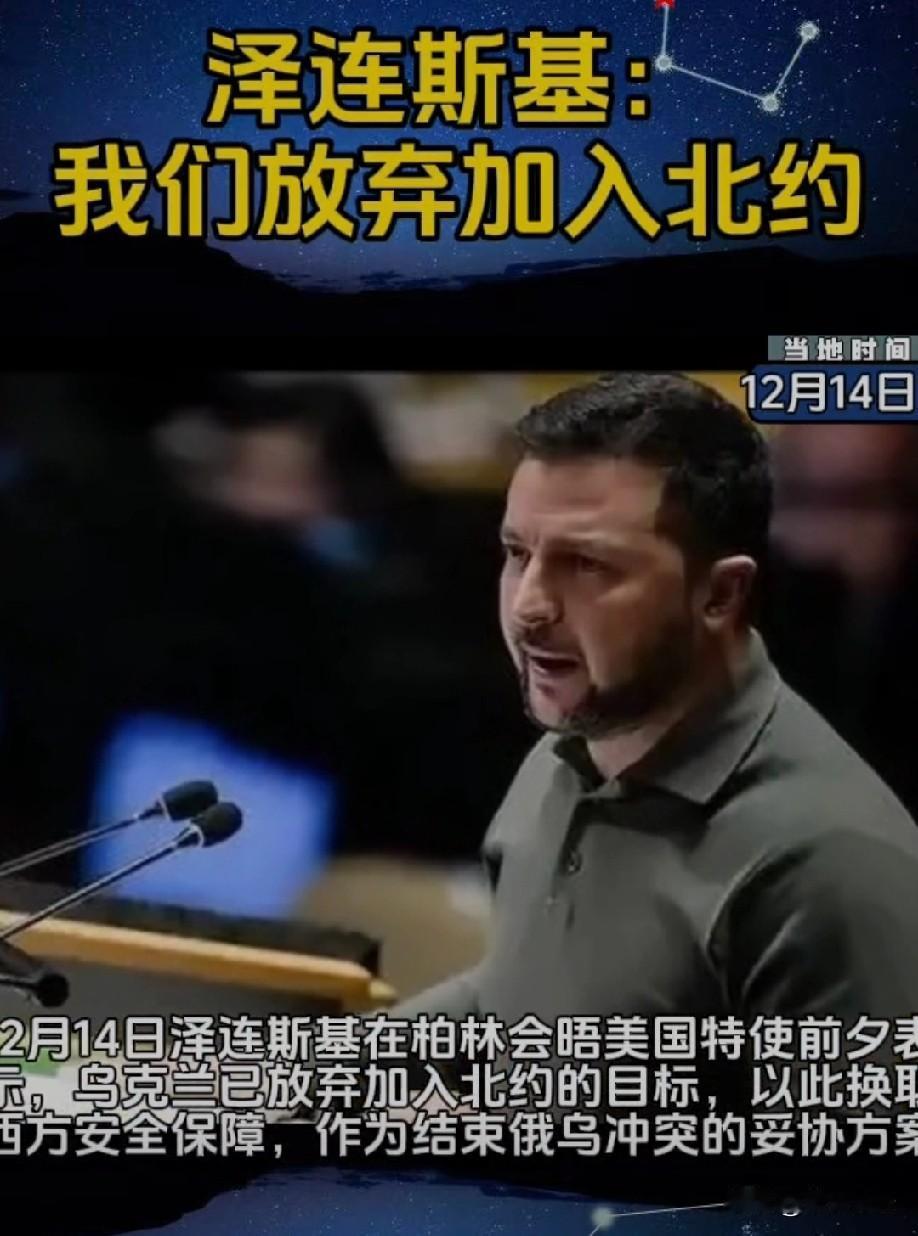 打了快四年的俄乌冲突,终于迎来关键转折!泽连斯基官宣乌克兰放弃加入北约,想用这个核心诉求换西方的安全保障。 想想当初,这可是写进乌克兰宪法的目标,如今为啥松口?还不是现实太残酷——国内经济崩了、青壮年打没了,美欧援助也越来越乏力,再不妥协真扛不住了。 其实俄罗斯一开始的底线就是阻止北约东扩,现在仗打了这么久,乌克兰丢了不少土地,最终还是回到了原点。 只能说,小国把命运绑在大国战车上,到头来往往是最受伤的那个,和平从来都不是靠喊口号就能来的。
