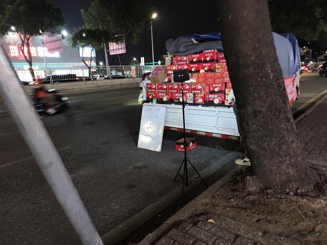 12月14日,东莞寮步,星期天。晚上没加班,外边逛街,发现一写着卖陕西苹果的小货车,我看到是卖家乡苹果的就买了一箱。 这苹果套塑料袋,跟我90年代种草果一样,撕掉袋子,发现苹果的皮都炸起来了,我记得我以前种苹都光光的呀,这苹果怎么炸皮了。 削了皮,吃了一个,粉粉的,我知道返苹果放的久了,水分也缺失了。