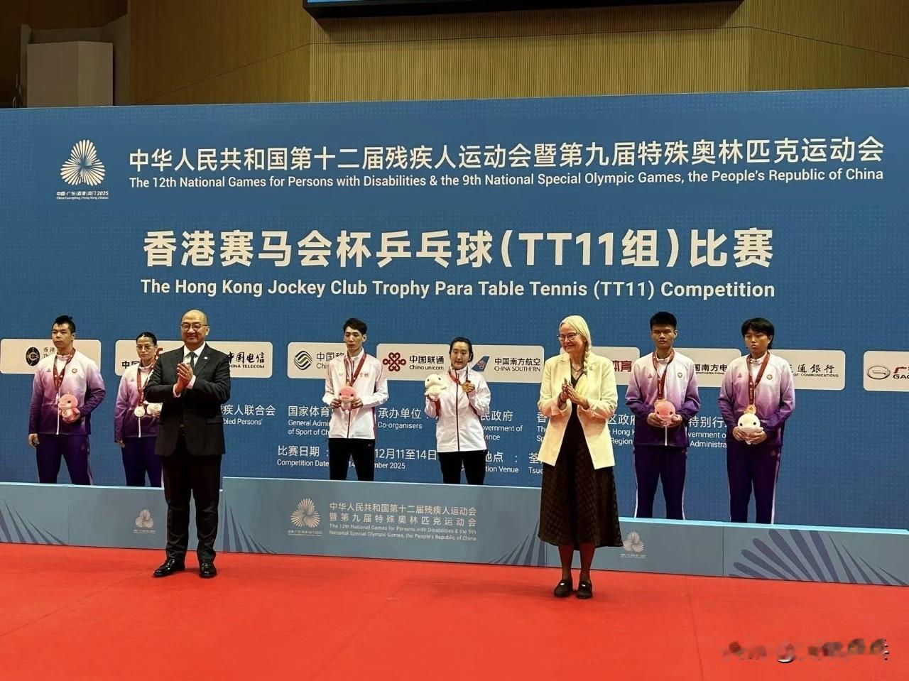 索林观看中国特残奥会乒乓球比赛并颁奖 【来源:ITTF 】 12月13日,中国第十二届残疾人运动会暨第九届特殊奥林匹克运动会乒乓球TT11项目混合双打比赛在中国香港进行。 吉林选手王博/唐亦欣获得冠军,香港一团选手温伟乐/黄珮淇、香港一团选手袁景诚/王婷莛分获亚军、季军。 国际乒联主席、国际奥委会委员佩特拉·索林观看了TT11的混双比赛并为获胜选手颁奖。 2025.12.14
