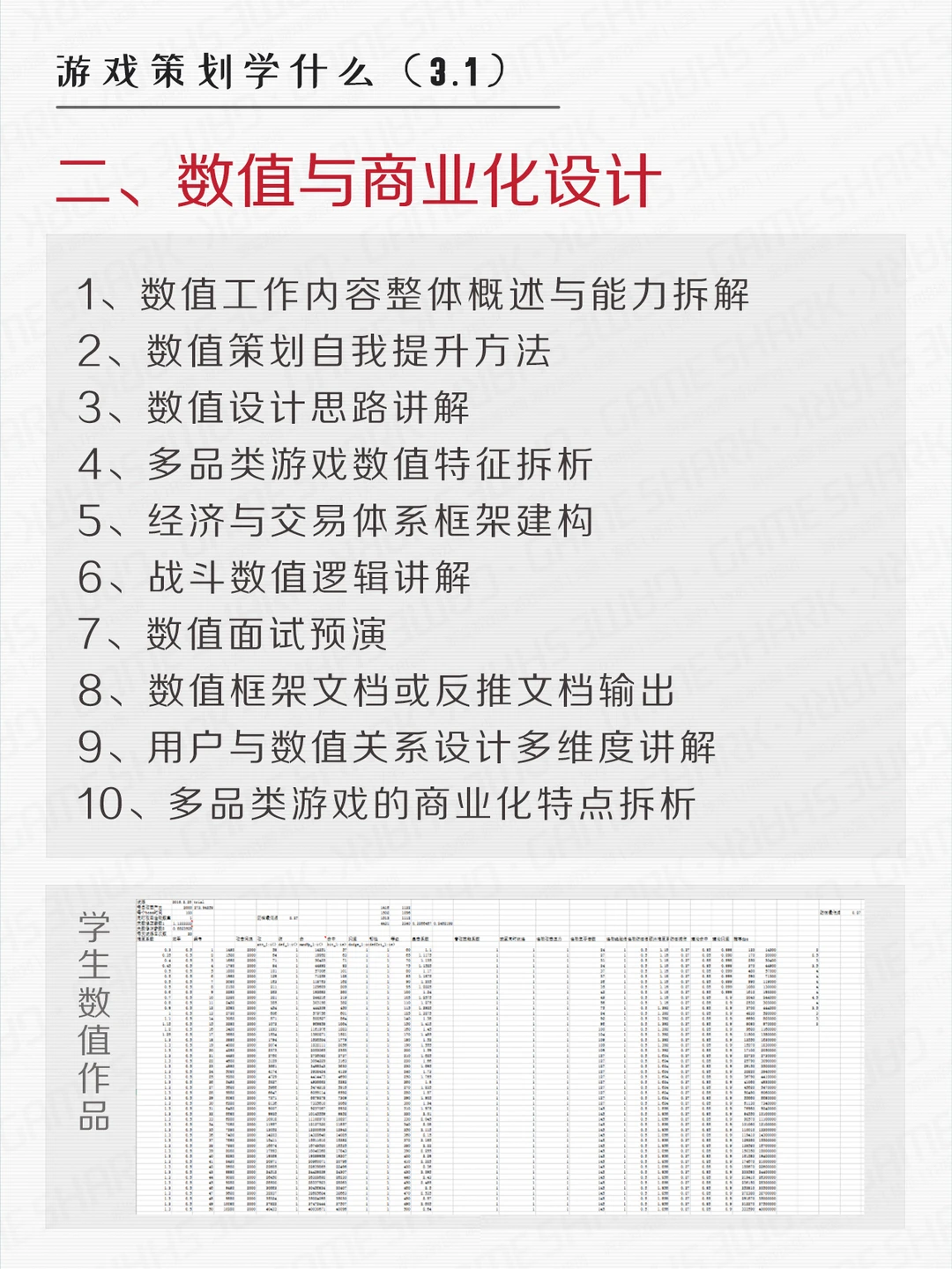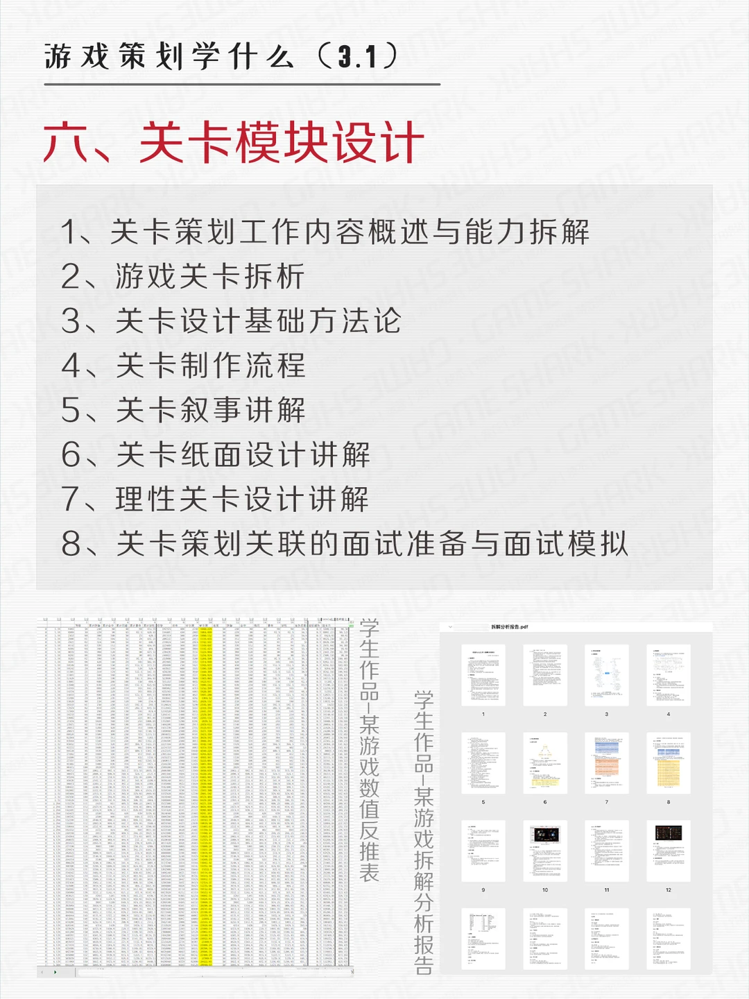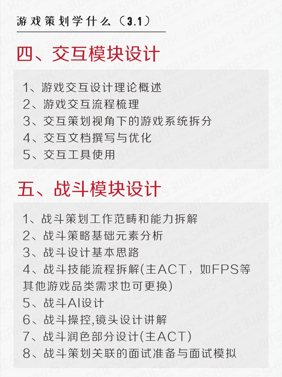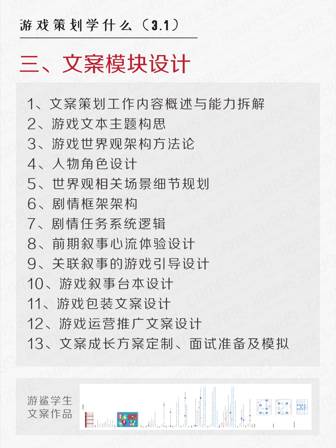 游鲨游戏策划课程内容参考~ p.s.游鲨课程可以根据学生需求定制,可指导产出游戏demo。