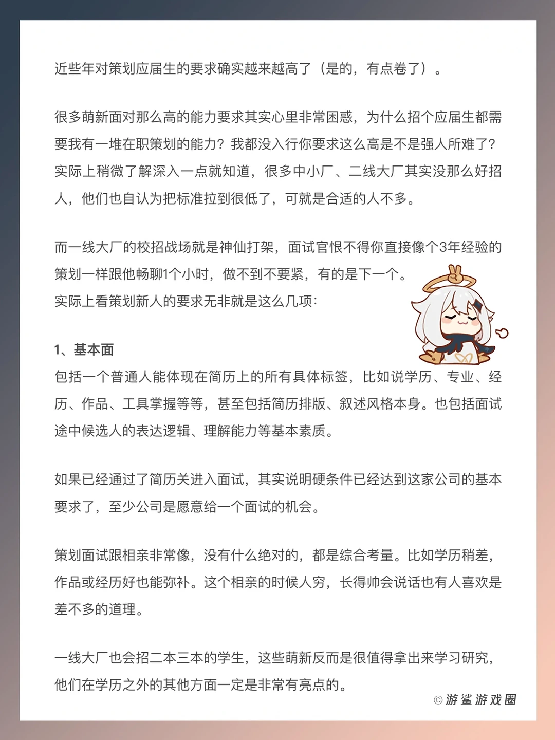 2023届秋招 游戏公司 游戏行业 游戏策划 求职 找工作 (图片来自米哈游《原神》)
