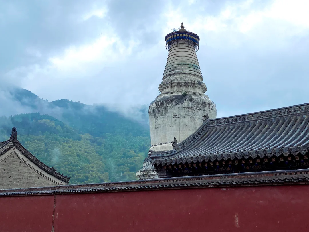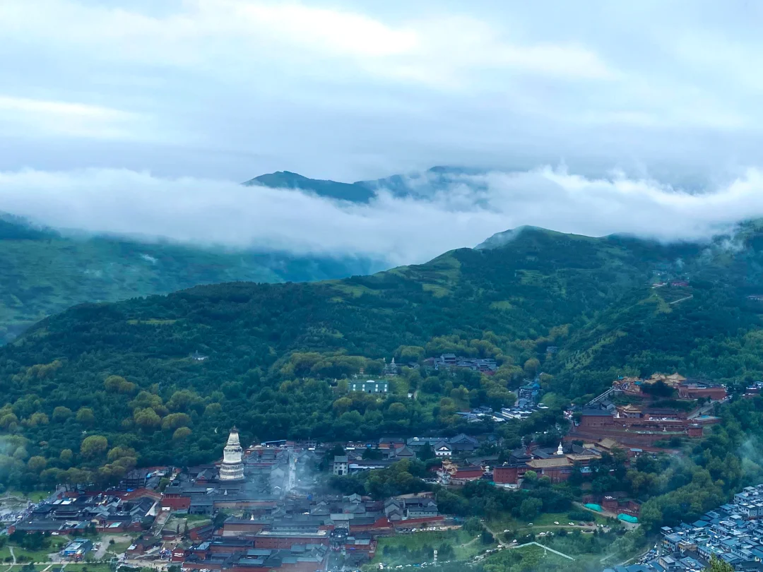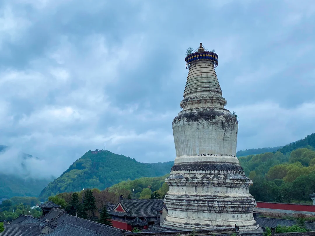 老照片,8月份的五台山 还未进入修缮期的大白塔 我记得是8月初去的五台山,东台山顶还在下雪,庆幸自己提前看了攻略,多带衣服。 目前为止坐过最远的机场大巴,从五台山机场到五台山景区,只记得好远好远,好像是80块。然后又从五台山景区里面坐大巴去大同,又是好远好远好远~