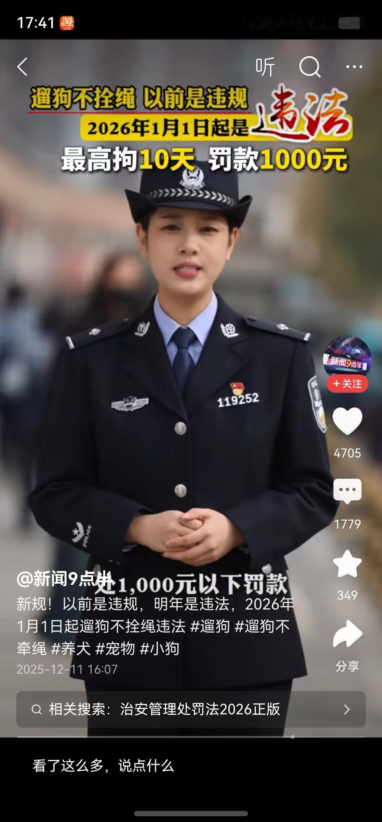 致papi妈妈:1188天的坚守,你赢了!这年头吃喝不愁、不找点事做都对不起自己的生活。 有爱心的养狗人应该考虑周全,出门保护好自己的狗狗,带证,栓绳,带嘴套一个都不能少,还有尿不湿,不要让乱尿乱拉屎。 养宠物是你的自由,但请爱狗人士不要给别人带来伤害与麻烦,别人没义务为你们的爱好买单。 以后路上看到不牵绳的都可以拍视频报警了,生动的诠释了什么叫,恶人先告状。 她把狗的罩子抢着戴了,以至于狗没有罩子乱吃东西被毒死了,已经守孝三年了,至于祭祀没啥必要。 这阵子,都快分不清楚是人仗狗势、还是狗仗人势了。