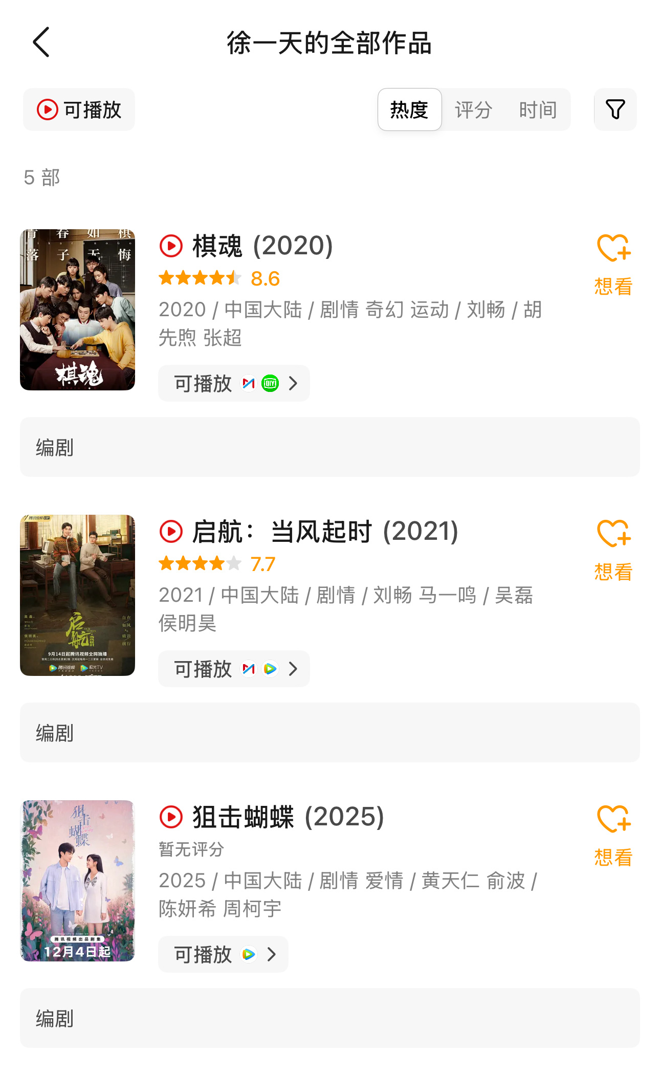 狙击蝴蝶热度破了27000了,恭喜。事实就是靠谱的班底就是最有希望做出来作品的。这剧的编剧徐一天是棋魂的编剧,导演是许光汉想见你的导演,同时黄天仁+俞波的组合也是暴雪十分的导演组合。可以说没有瘸腿的班底。甚至比很多流量剧的班底更靠谱。