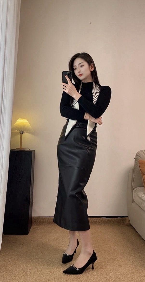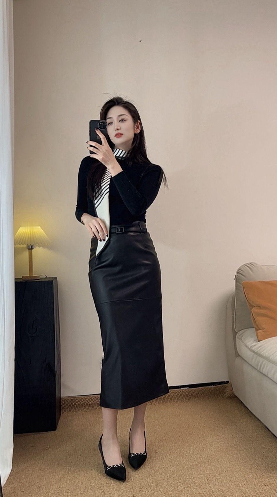 优雅黑裙,气质满满,镜中自拍的完美瞬间!