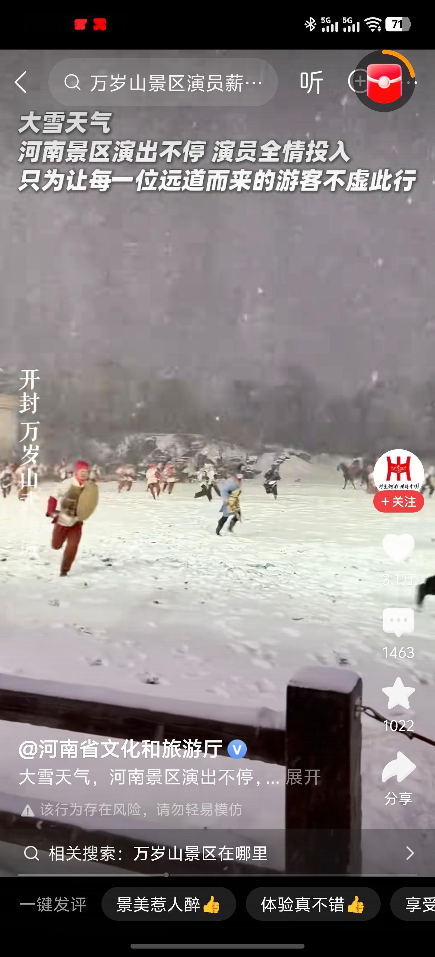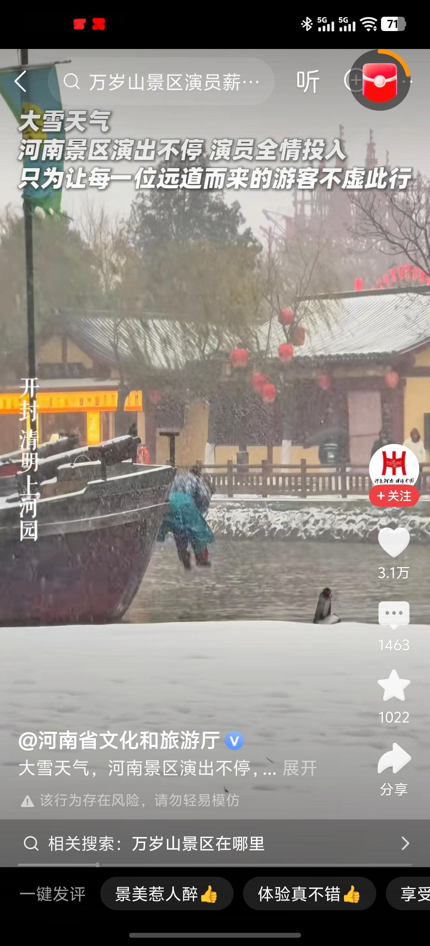 一场雪让开封万岁山景区又火了并不是演技多么的优秀是工作人员们那份冒雪坚持的敬业尊重自己的职业也会赢得别人的尊重想去景区打卡了