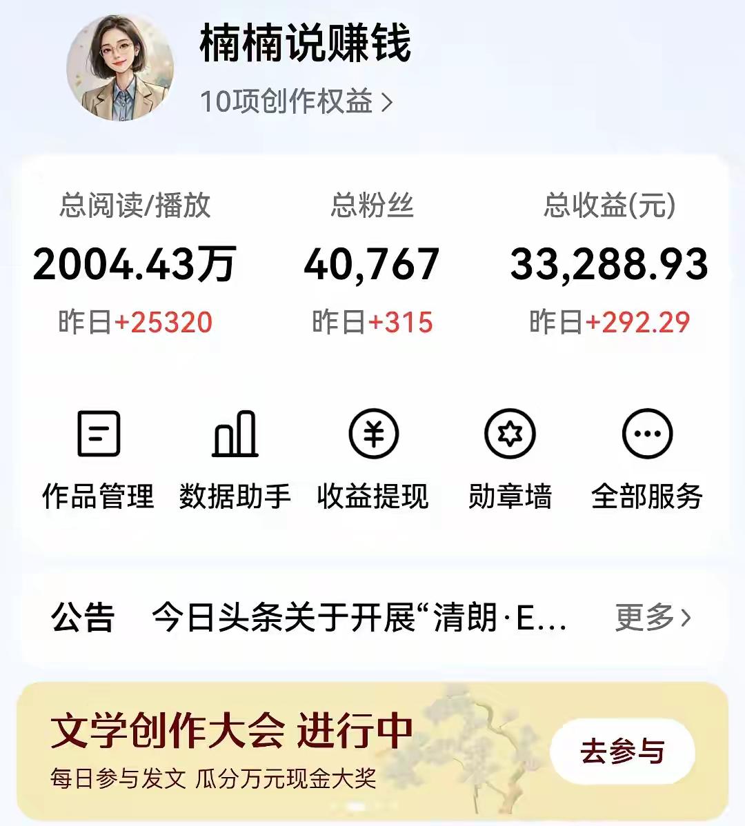 差在哪?她2万多的阅读量,收益292元,我8万多的阅读量,收益才17元。头条收益
