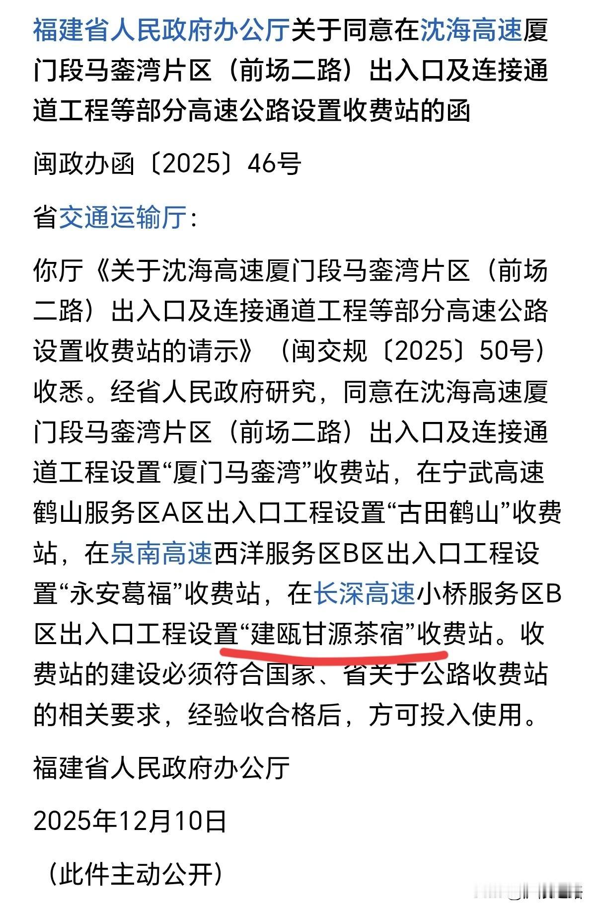 好消息!福建建瓯市再增一处高速出入口。 近日,在“两通工程”项目里,建瓯市长深高速小桥服务区B区将新增一个简易高速服务区出入口。 目前,省政府已批复通过,将在长深高速小桥服务区B区出入口工程设置“建瓯甘源茶宿”收费站。该项目位于建瓯市的长深高速公路小桥服务区。