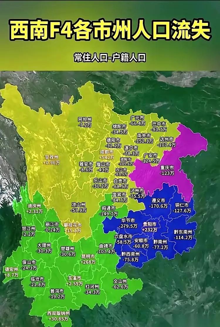 云贵川各地的常住人口对比及人口流失对比。 乌蒙山一带也是人口流失最严重的地区之一。首先应该是这片区的人们喜欢生孩子,人口基数大,产业单一又少,没有办法只有外出讨生活,而且这片区的宜居程度也不高,又是3省久界等原因吧!以上仅供参考,欢迎补充留言与评论,属个人意见!