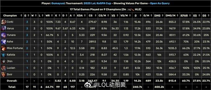 Peyz和Gumayusi的K杯数据对比:Peyz击杀137个!Guma击杀仅99!看来不一定是Gumayusi强,而是在T1的AD强。T1Gumayusi看T1捧杯英雄联盟S15