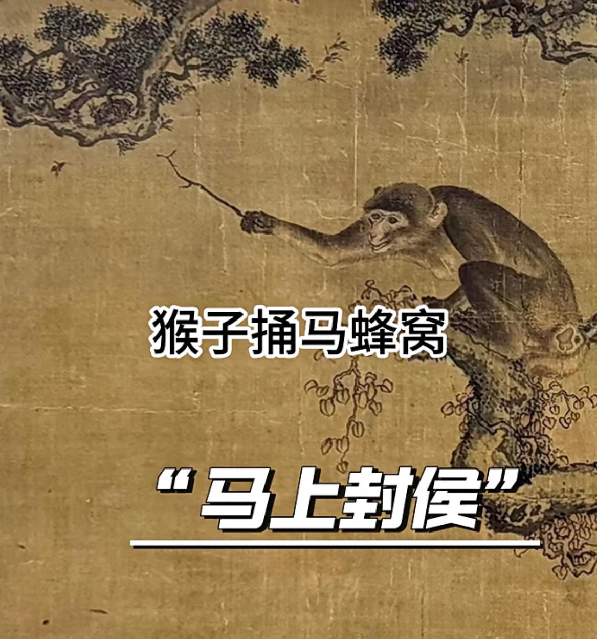 古人玩的那些高级谐音梗: 宋徽宗赵佶的《耄耋图》,猫同“耄”,蝶同“耋”,猫扑蝶是“耄耋”,寓意祝人长寿。 沈铨的《蜂猴图》,猴子捅马蜂窝是寓意“马上封侯”。 吕纪的《先春四喜图》,喜鹊立在梅花枝头,寓意“喜上眉俏”。 郎世宁的《锦春图》,锦鸡头上海棠花是寓意“锦上开花”。 明宣宗朱瞻基的《三阳开泰》,一只母羊带两只乳羊食春草,衬以竹树和茶花及山石绿草等,画中“羊”谐音“阳”,“竹”谐音“祝”,取《易经》中“三阳开泰”之吉兆,寓意冬去春来,万物复苏。 谐音梗 古人 古画