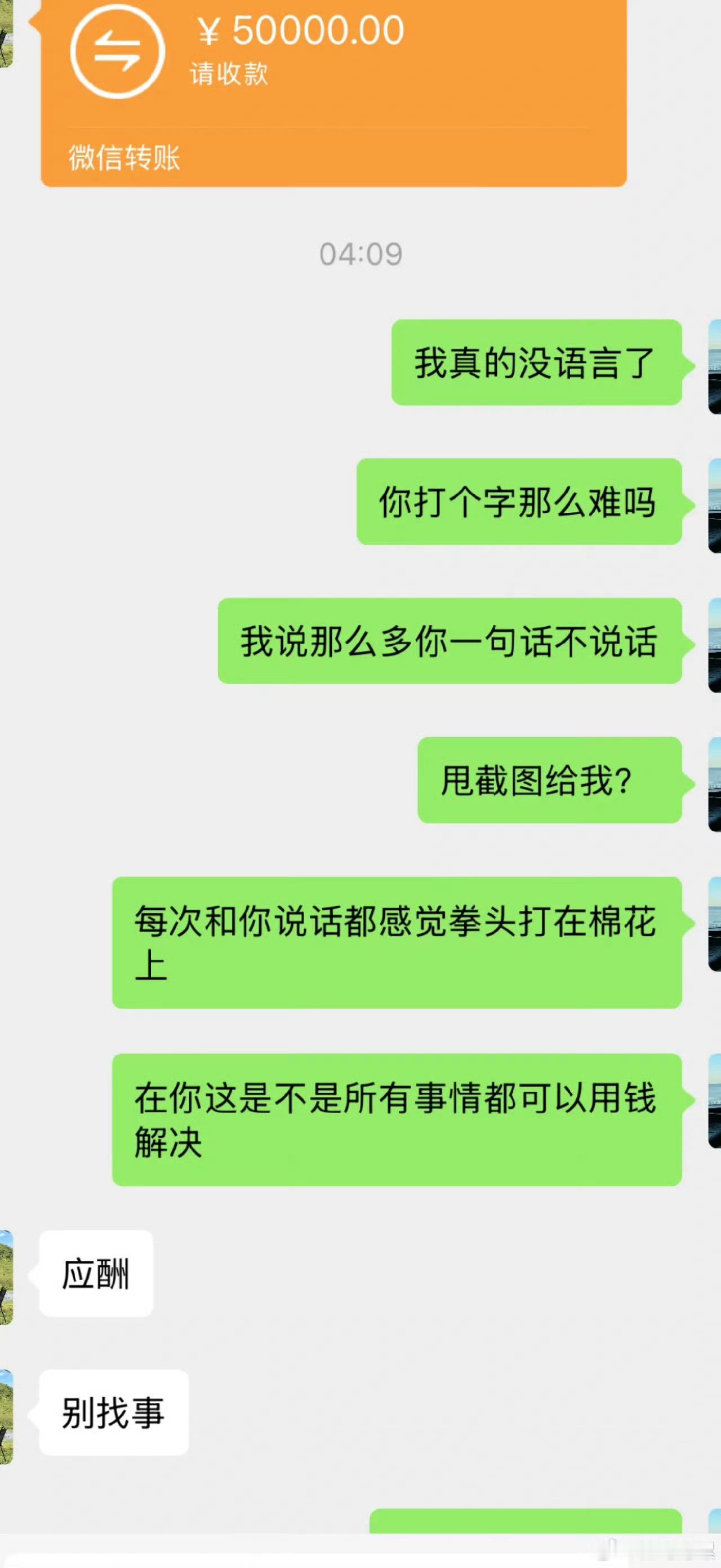 凌晨4点不回家老公转52万,老婆闹着要离婚。直言没有感情要钱有何用? 关键你用拳头打在棉花上就有52w,而我用脸去找拳头都没有0.000052w。 果然有钱人需要的是情绪价值,而我们穷人只想要钱。真俗气! 姐姐,别生气了!找陪聊吗?情绪价值直接拉满的那种!