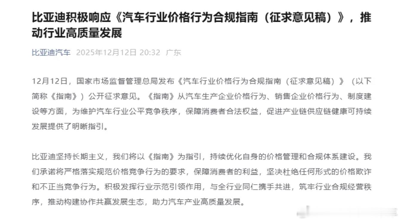 国家发文禁止亏本卖车 价格战要停止了?国家发文,除了清库存车外,不能以排挤对手为目的打价格战,禁止亏本卖车需明码标价、明确交付时间、严禁价格欺诈目前长城、比亚迪、小鹏等多家车企已表态支持新能源汽车小米汽车