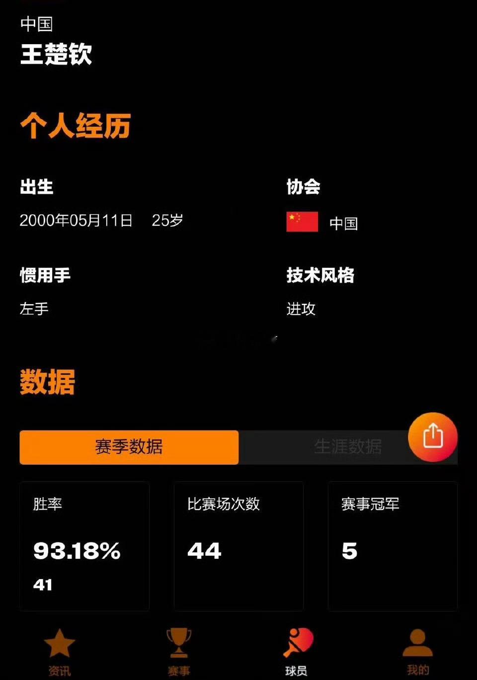 王楚钦本赛季国际赛事单打6冠1亚虽然🏓不如⚽️🏀那样场地大但更消耗体能和脑力