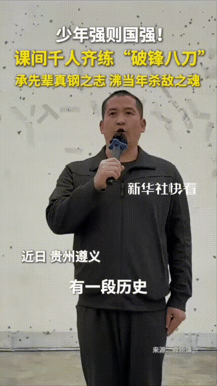 这不比蔫巴的体操强多了!贵州遵义,某校大课间竟然没领着学生做广播体操而是给每个同学发了一把砍刀!体育老师竟领着孩子们一起挥刀! 操场上传来整齐的“喝”声,每把刀挥得带风,孩子们的脸涨得通红,校服领口渗着汗 近期遵义汇川某中学换了大课间内容,广播操换成《大刀进行曲》,发的是木质道具刀——边缘磨得圆润,砸在手上都不疼。体育老师提前学了破锋八刀,那是抗战时二十九军的刀法 破锋八刀不是花拳绣腿,是拼刺刀的实战招:劈下去能砍断枪杆,撩起来能挑开刺刀。当年二十九军将士用这刀,在喜峰口砍杀日军,才有了“大刀向鬼子头上砍去”的歌 学校说,遵义是红色之城,要让历史“站”在孩子面前。广播操太“蔫”,孩子挥刀时喊出声,“浴血奋战”就不是书本上的字了 为什么选破锋八刀替代广播操? ① 历史要“摸得到”,挥一刀才懂先辈举刀的沉,比背“九一八”管用 ② 少年需要“血性”,喊着“杀”挥刀,比站着揉胳膊更像“少年强” ③ 红色教育要“日常”,每天练十分钟,比一年去一次纪念馆记得牢 我问过学校家长,有个爸爸说:“我家娃以前嫌历史课无聊,现在每天回家要教我挥刀,说‘这是爷爷的刀’”。爷爷是抗战老兵,当年丢了半条胳膊,现在看孙子挥刀,他攥着刀把哭 网友@老槐树的孙子留言:“我爷爷是二十九军的,看了视频他说‘这刀没白砍’”。这条评论底下有三千赞,很多人附了家里老人的抗战勋章照片 要我说,这种教育才叫“活”。不是考满分,是知道“我是谁”“从哪来”。木刀挥得再轻,也比空喊“勿忘国耻”有用 你觉得你家孩子该练这种“大刀课间操”吗?
