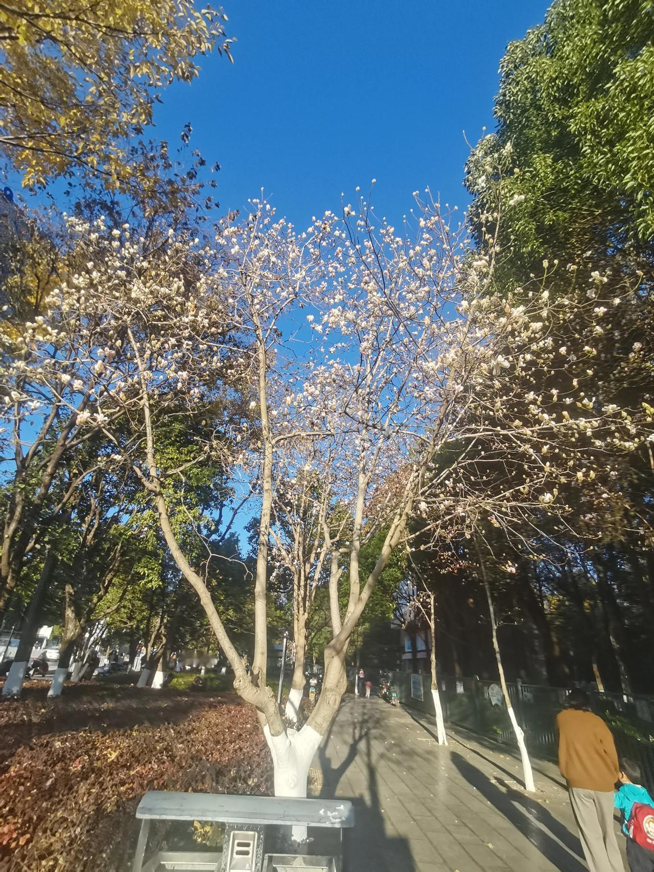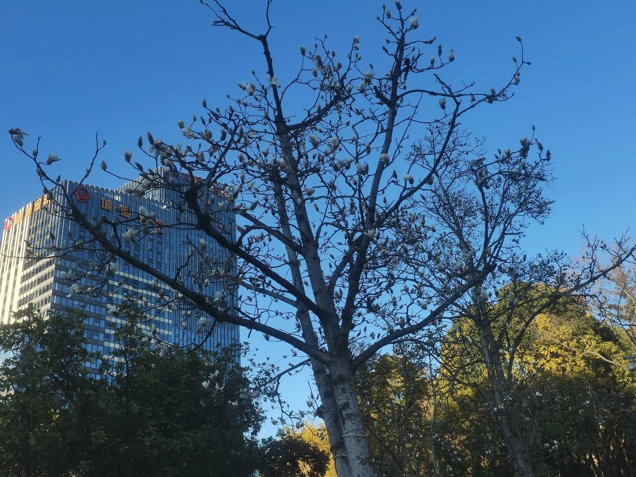 这个天以是太好了 这个是刚刚在官渡区一个公园边上见到的,玉兰花开了,前几年在浙江义乌这边要等年后的三月底后,现在的昆明这几天的温度是不错,晚上有点凉快,经常都可以在外面碰到春夏秋冬的着装人们,也是一道风景,我一般都是春秋装过,冬天偶尔穿下毛衣,羽绒服还没有穿过呢!当然了,还是要看自己的身体状况的。以上仅供参考,属个人意见!