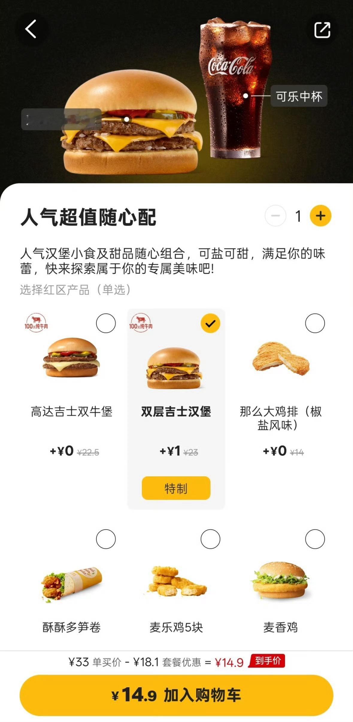 穷鬼套餐 涨价双吉士从12到13.9,现在是14.9……汉堡越来越小,价格越来越