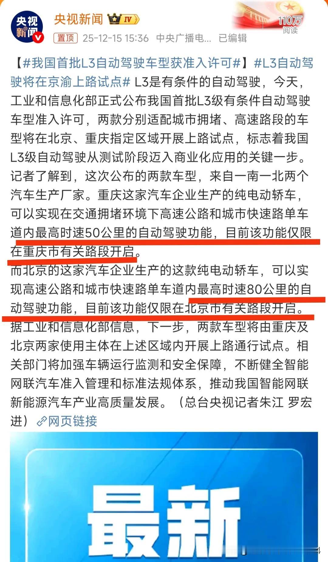 来了来了,刚刚工业和信息化部正式公布,自动驾驶有2款车型获得准入许可,进入试点!这标识着自动驾驶即将成熟,投入使用! 看来以后电车是绝对主力了,毕竟自动驾驶等高科技加持的电车太方便了! 你还在找停车位时,人说不定都上楼回到家中,躺在沙发上打游戏了!你还在苦逼地强撑着睁大双眼驾车时,人可能在后座补觉呢... 十年前,这些想都不敢想,科技真是太神 奇了!说不定以后连驾照都不用考了[呲牙] 自动驾驶