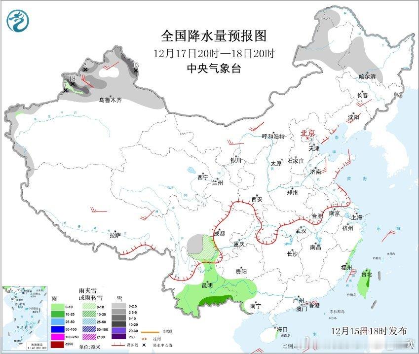 【雨雪】昨晚到今天,新疆北部阿勒泰下属的区域出现降雪,吉木乃出现大雪,今晚20时积雪11厘米。未来2天,阿勒泰北部还有明显降雪,并出现10厘米以上新增积雪。18日沿天山一带也有明显降雪。19日内蒙古东北部和黑龙江北部的降雪,积雪效果高,新增积雪可达10-15厘米。未来南方的降雨,缓慢发展增多。明天零散分布在云南四川贵州广西海南。17-18日降雨主要在云南、贵州、广西,四川南部也有一些雨雪。19日随着南支槽东移,广东降雨增多。20-21日还有另一个南支槽发展东移,南方可能出现大范围降水。但目前数值预报对降水落区、雨雪分布还有分歧。