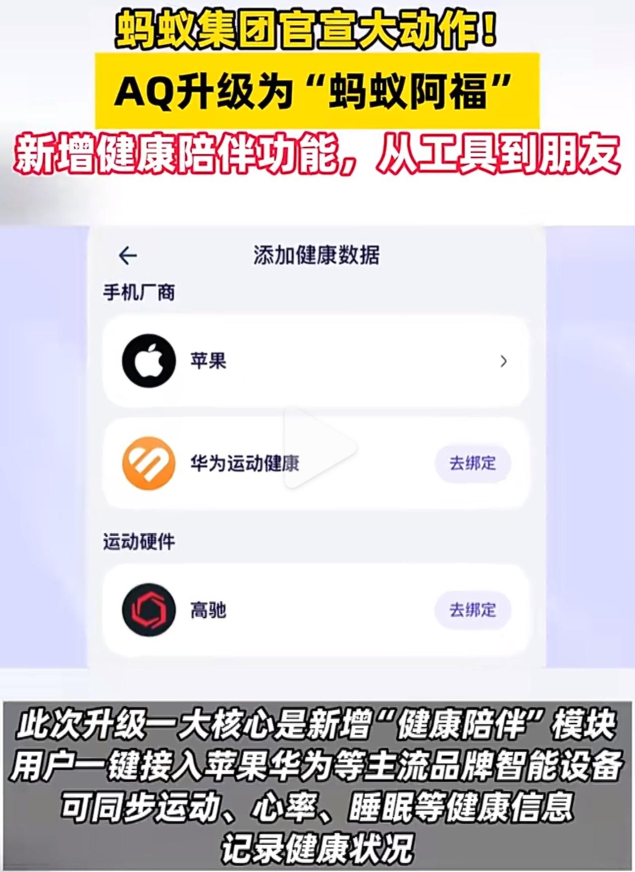 12月15号这天,蚂蚁集团旗下的AQ正式升级成了“蚂蚁阿福”,不再是以前那种单纯的工具类应用,摇身一变成了贴心又靠谱的AI健康朋友,一上线就吸引了超多用户下载实测体验。核心升级了三大功能,智能健康问答做得特别精准,采用的是AI诊室的交互模式,会一步步追问症状细节,就像医生问诊一样,比如喉咙痛的时候,会仔细确认刺痛位置是在咽部还是深处,再结合个人健康档案,给出该观察调理还是及时就医的分层建议。 个性化陪伴感直接拉满,不管是想减重、优化睡眠,都能帮你拆解目标制定专属计划,比如给久坐的上班族定制“每日6000步+臀桥训练”的任务,还能同步苹果、华为等9大品牌智能设备的数据,自动推送用药提醒、定时拉伸提示,再也不用担心忘事。更贴心的是,它早就对接好了全国5000家医院的资源,在线就能直接挂号,医保也能一键支付,体检报告传上去立马就能解读,就连药盒随手拍张照都能认清楚。还有200家医院的云陪诊服务,6位院士再加上500多名名医的AI分身,24小时免费就能咨询,不用跑医院、不用排队等号,在家躺着就能拿到专业靠谱的健康建议,太省心了! 蚂蚁阿福是真的把日常健康管理的漏洞补得明明白白,三线及以下城市的朋友也能轻松拿到优质健康资源,不过大家得记好,它也就只能做日常健康提醒和指导,可替代不了专业的医疗诊断,真要是遇到严重症状,还是得赶紧去线下医院看医生,别耽误事儿。有了这个专属健康搭子,自律养生、日常健康咨询都省心多了,真心值得大家下载试试!蚂蚁保好医保 蚂蚁健康 蚂蚁医疗