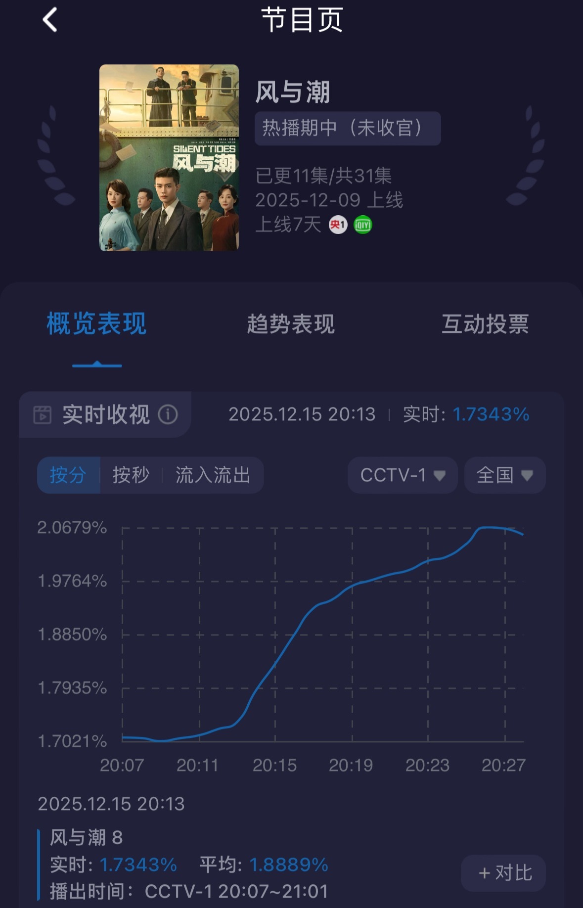 任嘉伦风与潮复更,观众都等不及了哈哈,这个收视率涨得好快。