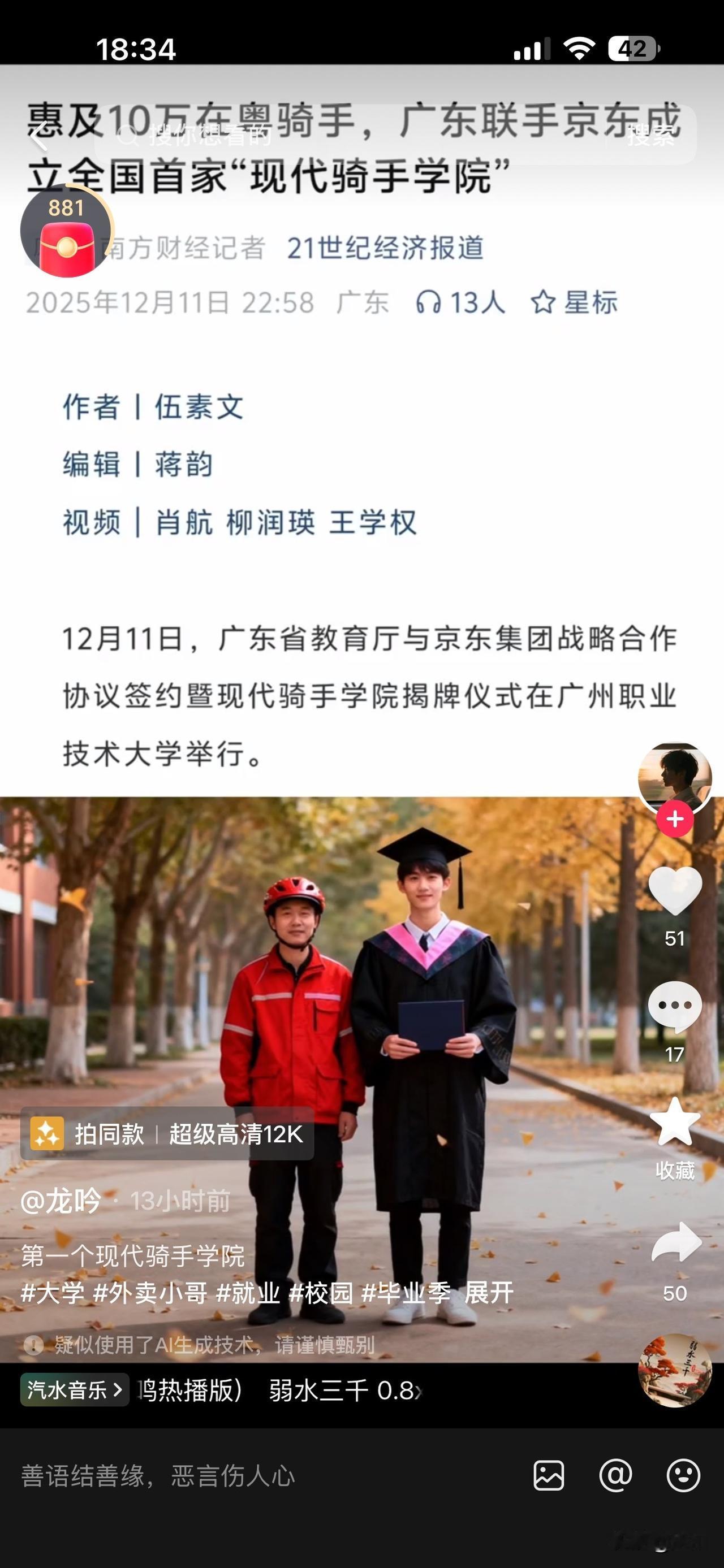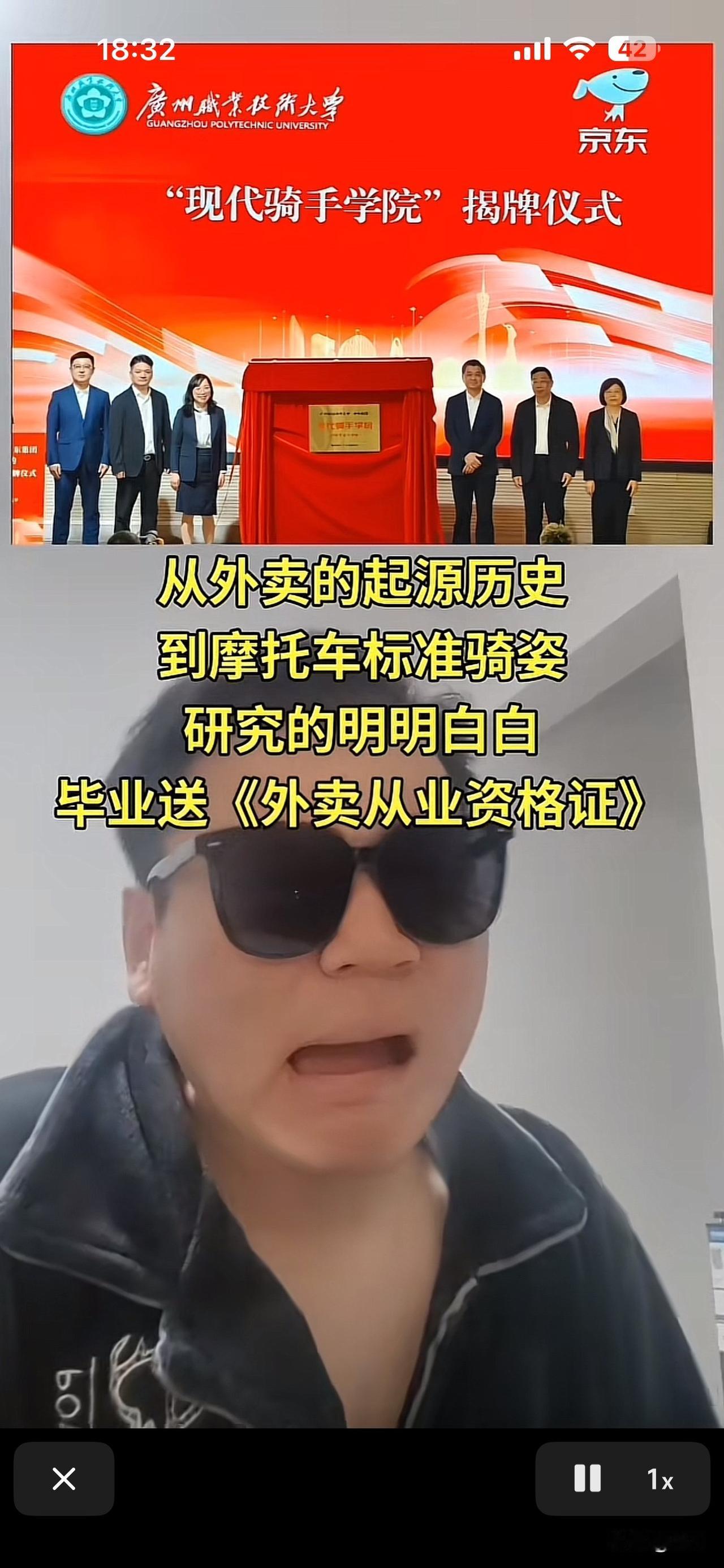广州惊现“现代骑手学院”,把外卖起源到摩托车🏍️标准骑姿研究的明明白白。 针对此事,是广东省教育厅和京东集团联合创办,大家怎么看?