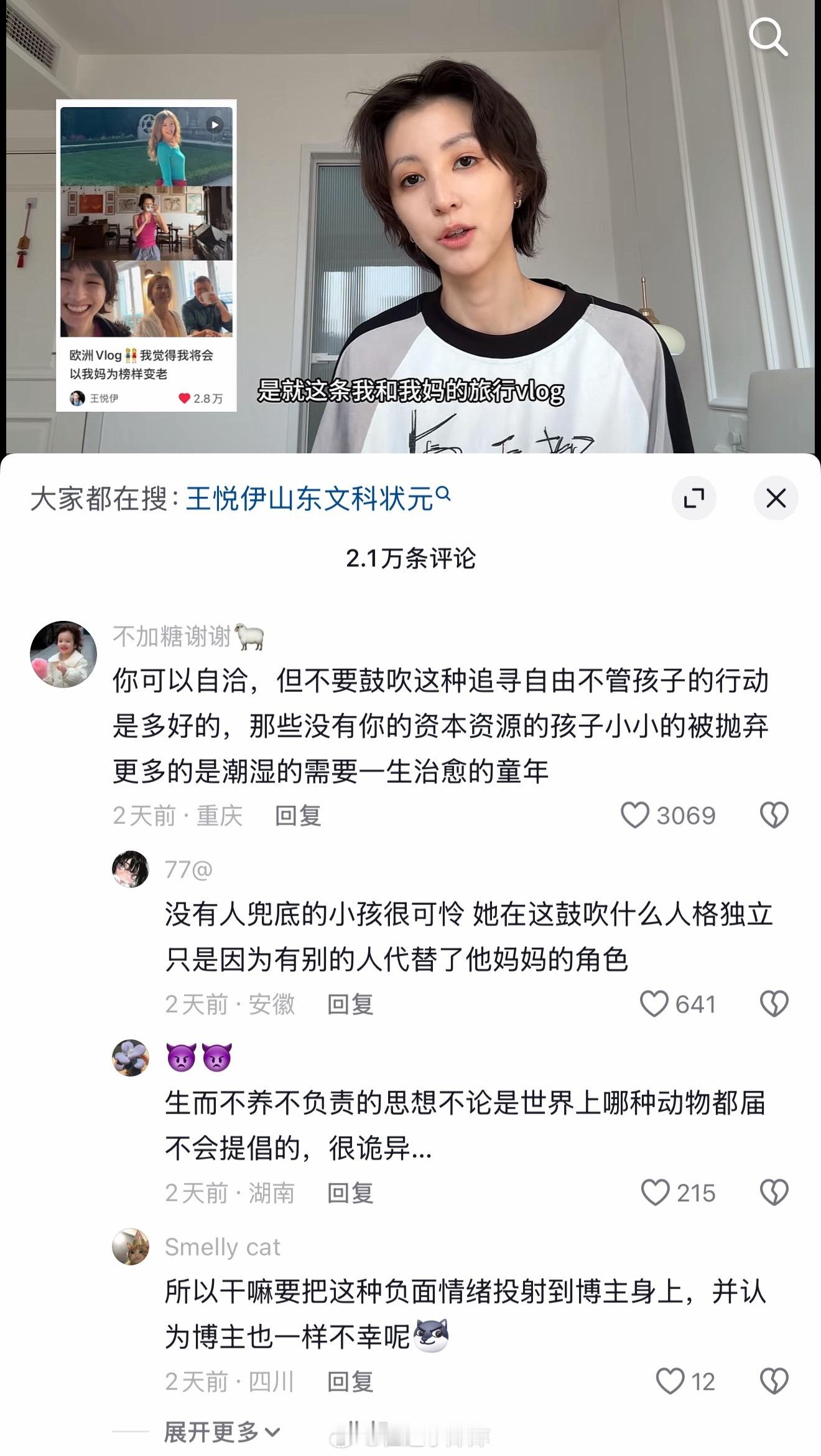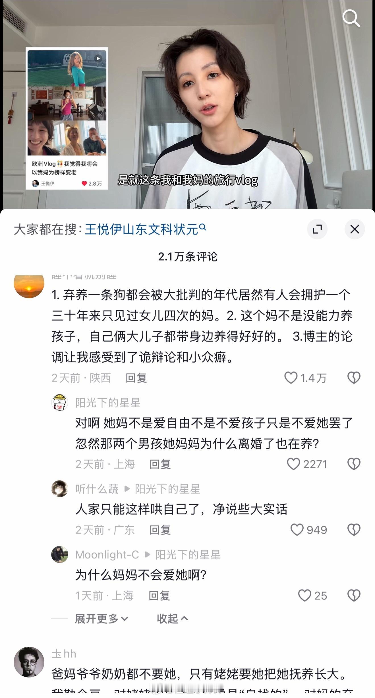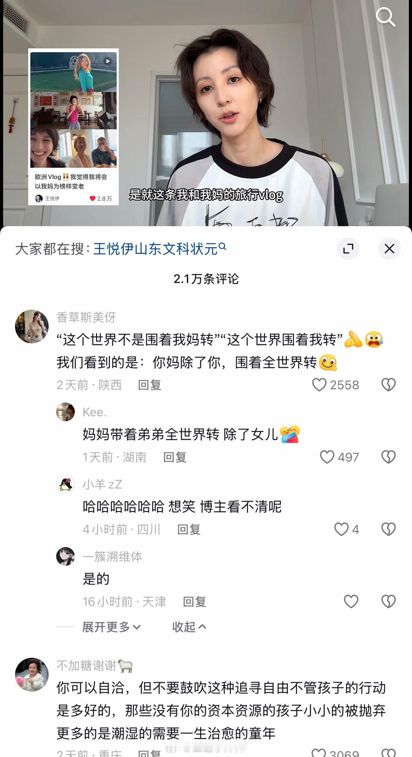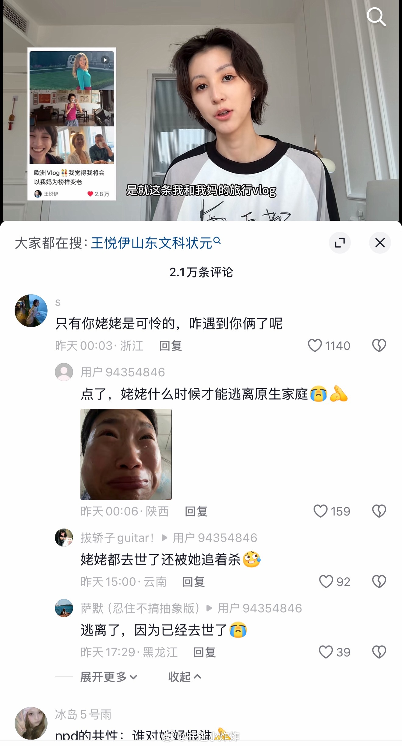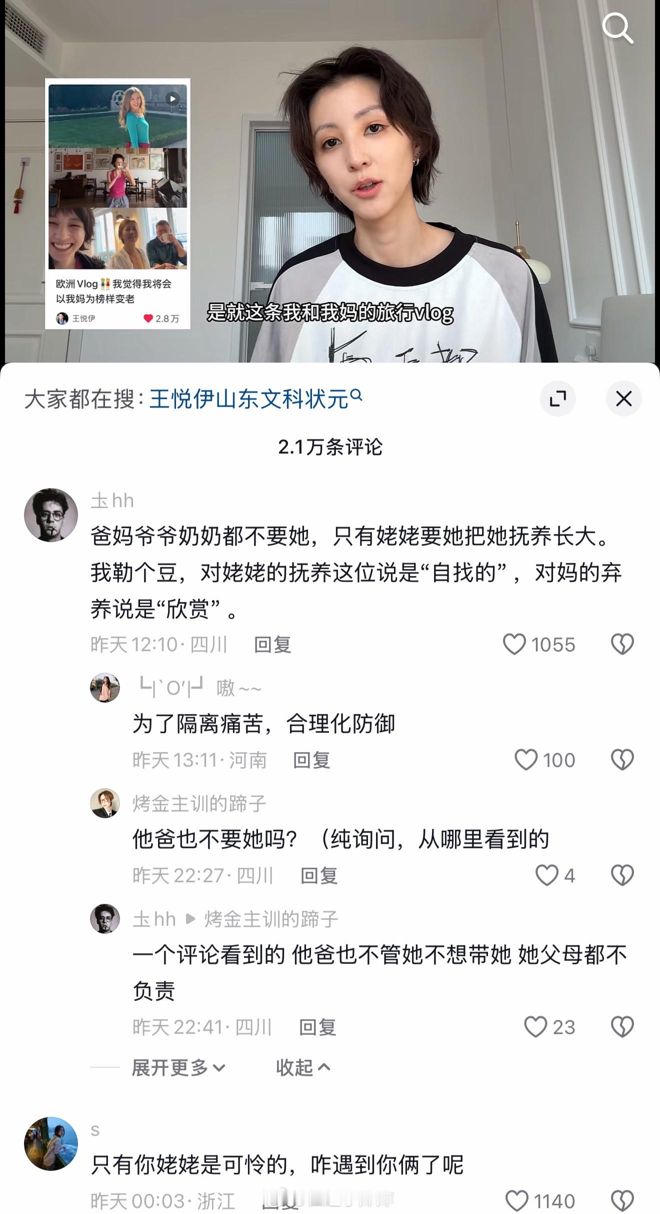 王悦伊 这是很典型的“慕强凌弱”行为,其实在生活里挺常见的,大家对照着身边人找找看在他们的认知里,选择权是强者才有的特权所以她欣赏,抛弃了她去“追求自由”的妈妈认为替妈妈担负养育责任的姥姥是自找的原本她和姥姥一样都挺不容易的被迫承担妈妈不负责的后果但为了让自己看起来很强,不是被抛弃的可怜虫她在自己和姥姥中间,亲手划开了一道分割线以弱者之姿凌驾于更弱的姥姥之上(这就很可耻了用自洽和欣赏,向抛弃者投诚,试图加入强者阵容受害者天天琢磨着给嫌疑人找合理动机找到以后还拍大腿说哎她这事办的可有创意听着多荒唐啊讲真,自己都一大堆原生代际的心理问题呢,就别出来给人答疑解惑了,阿Q也是后继有人了