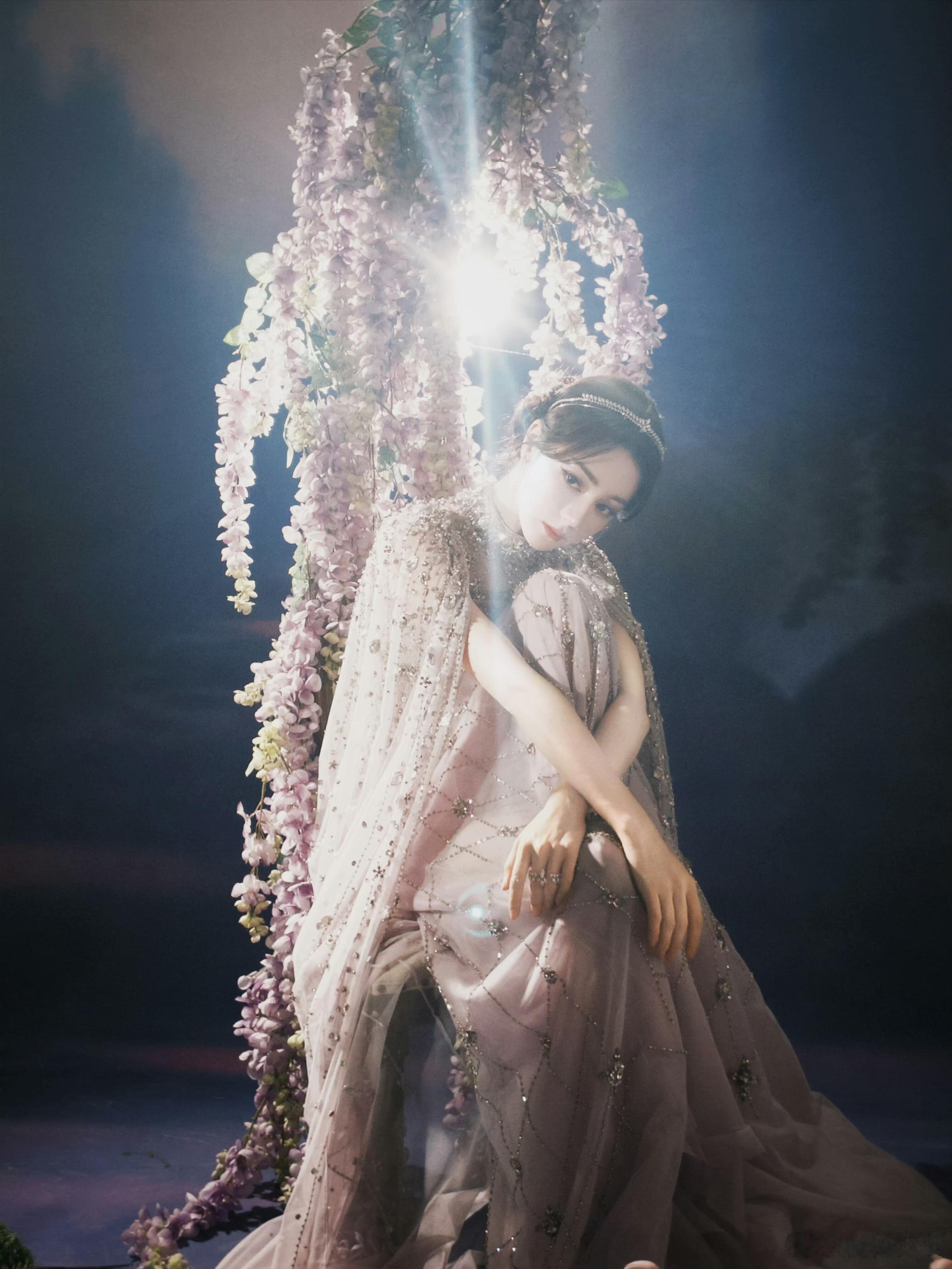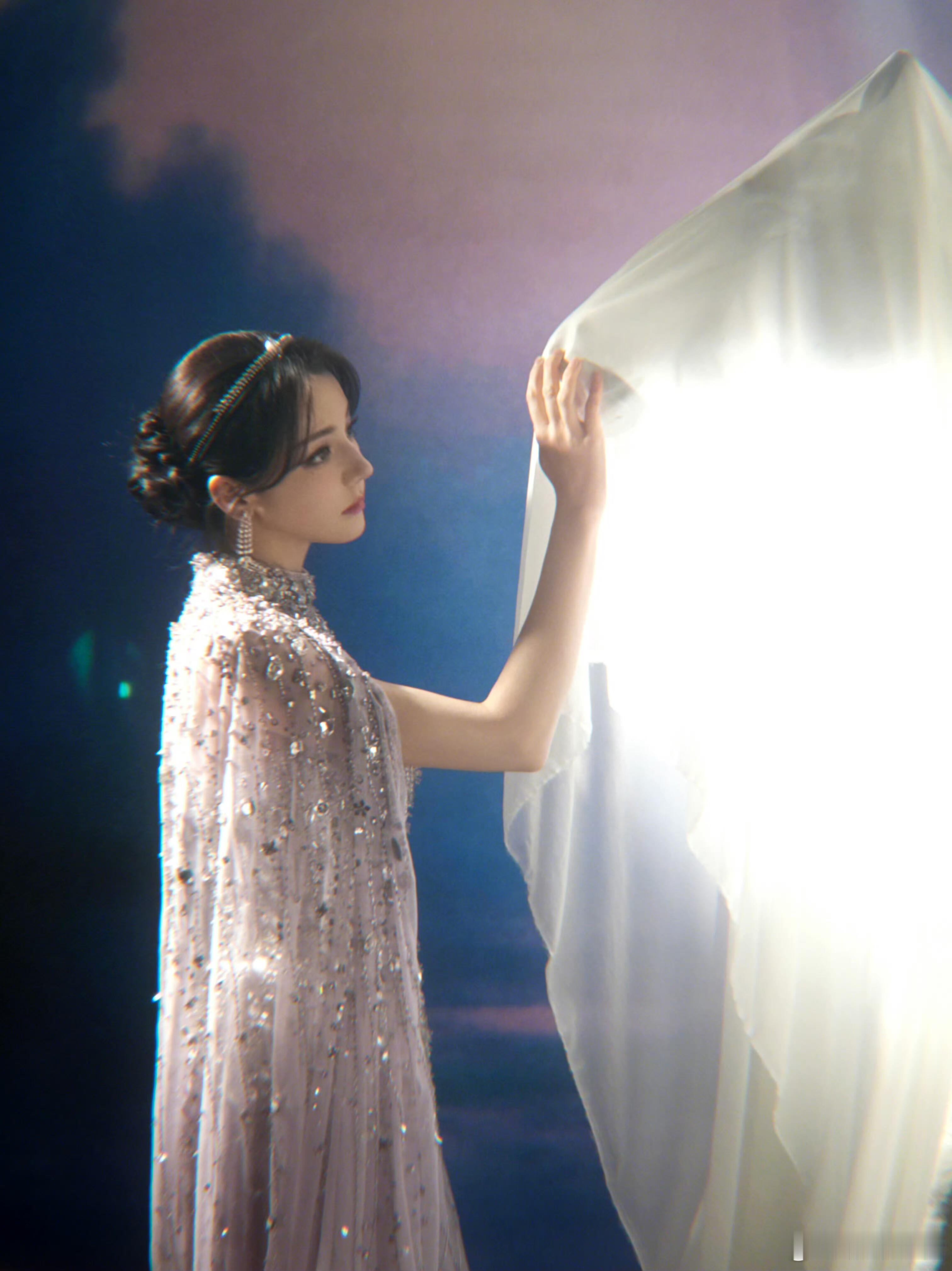 迪丽热巴穿直播造型真的是美翻了!一身定制紫调裙,亮片刺绣与薄纱披风绝配,珠宝点缀,盘发发箍让她秒变公主~迪丽热巴直播