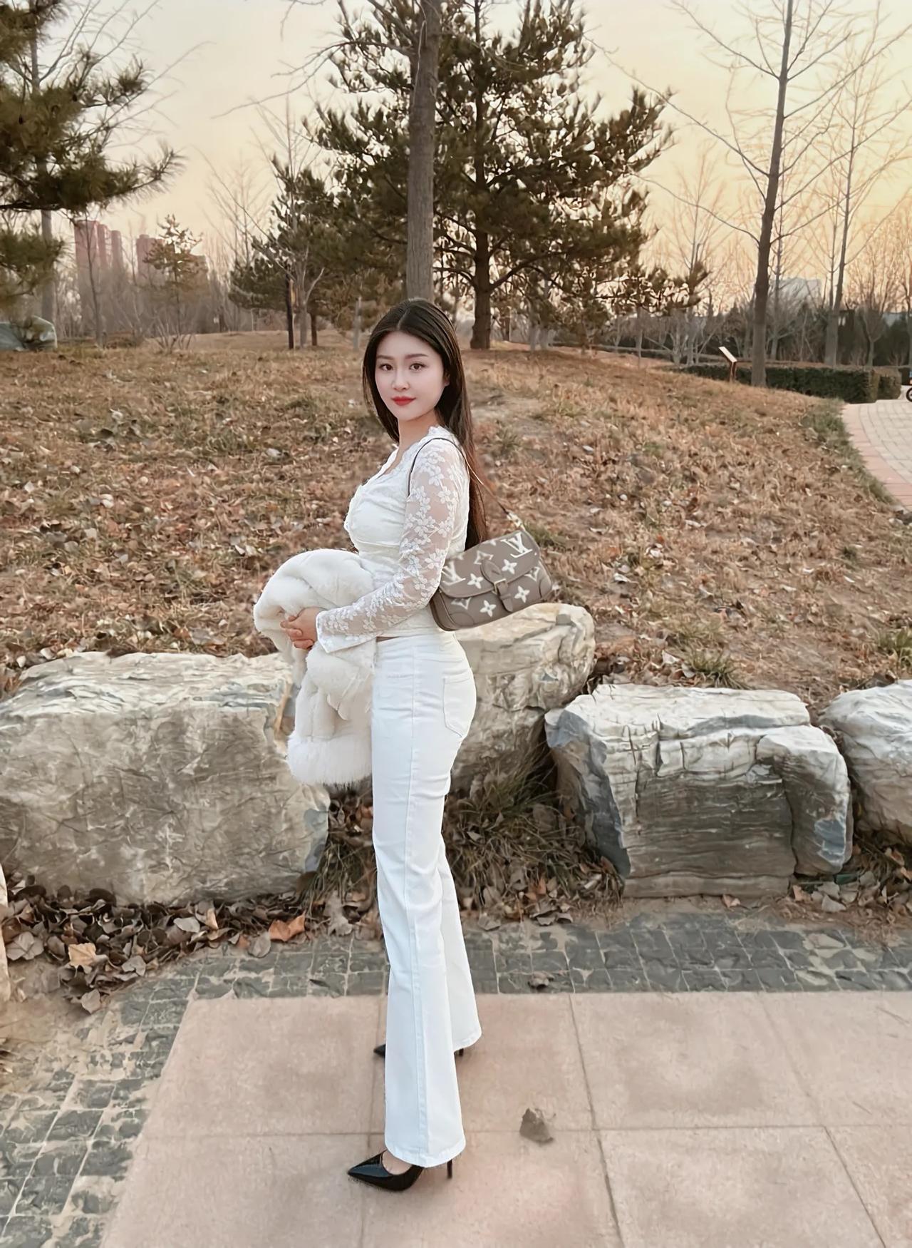 冬日暖阳下,白衣少女与毛绒外套的温馨邂逅。