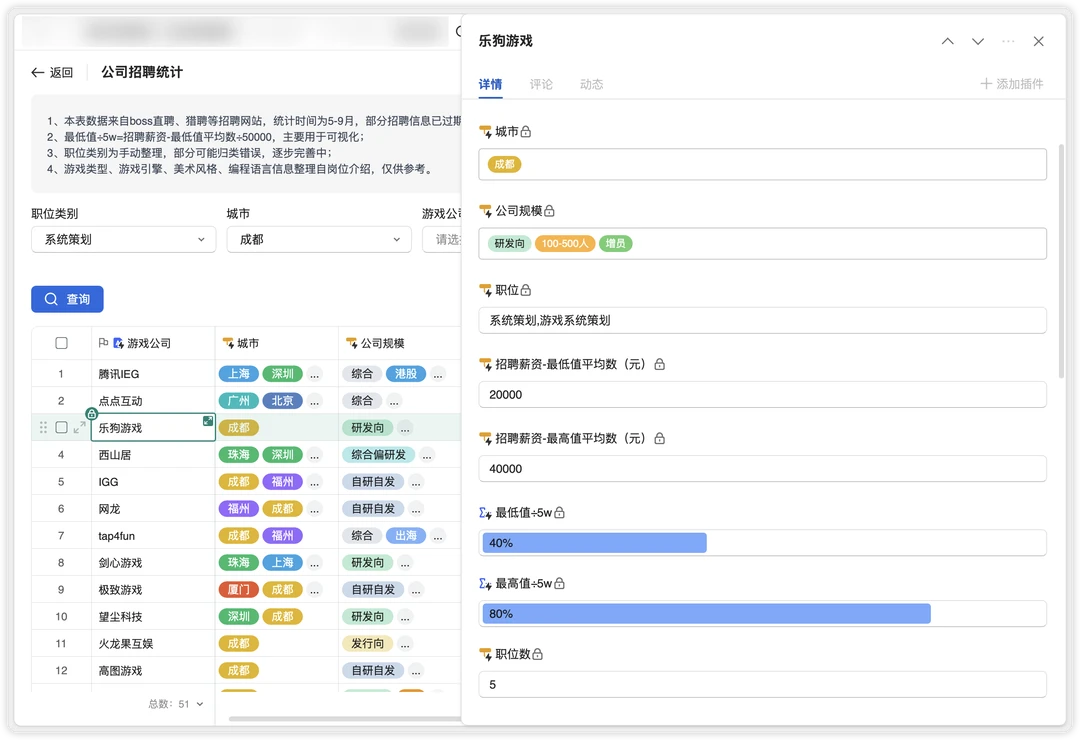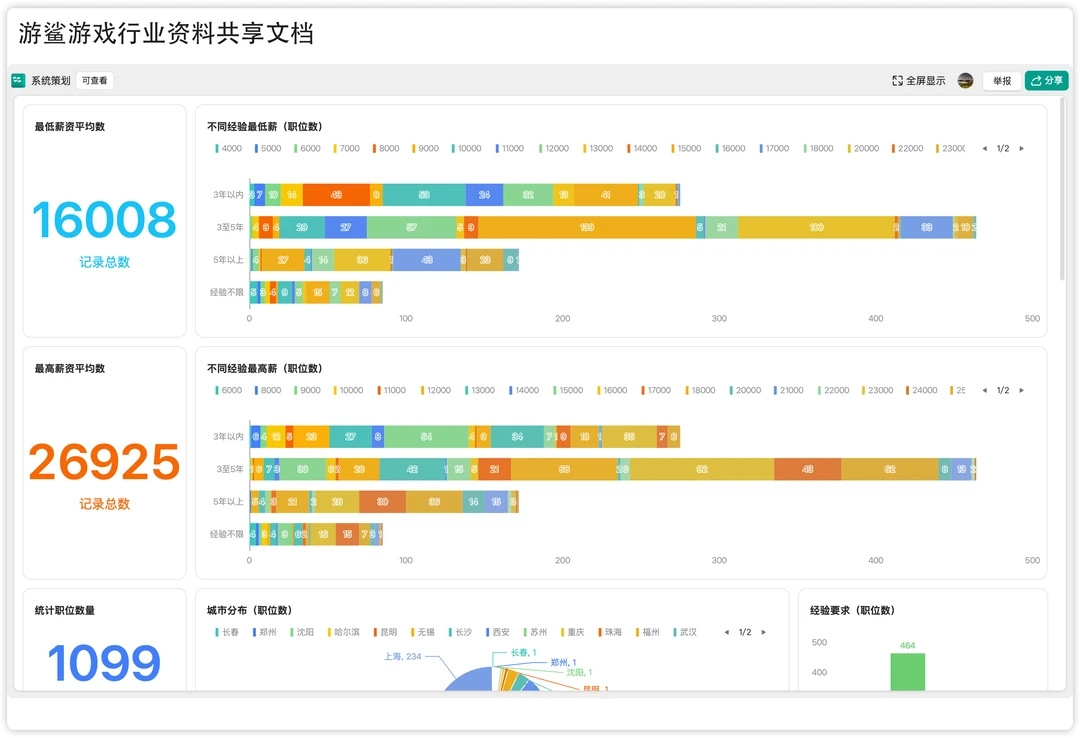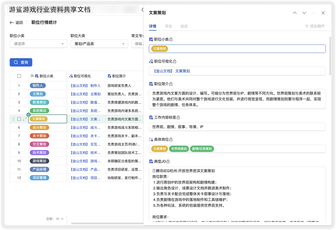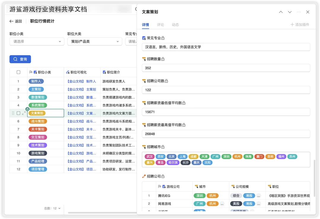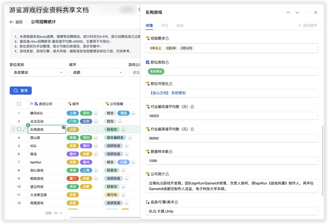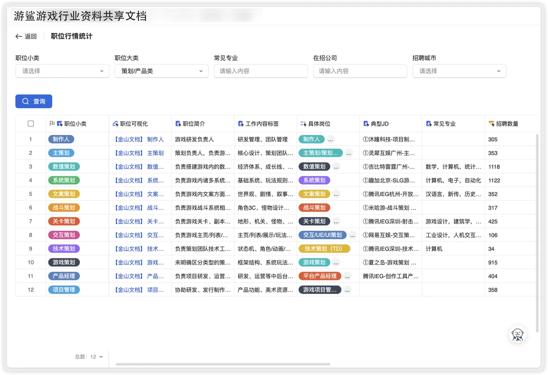 游鲨文档新上线游戏岗位查询应用,可以查看公司在招聘哪些岗位,岗位整体行情。欢迎使用。 路径:共享文档👉文档目录👉岗位查询 文档获取:本笔记关联的群