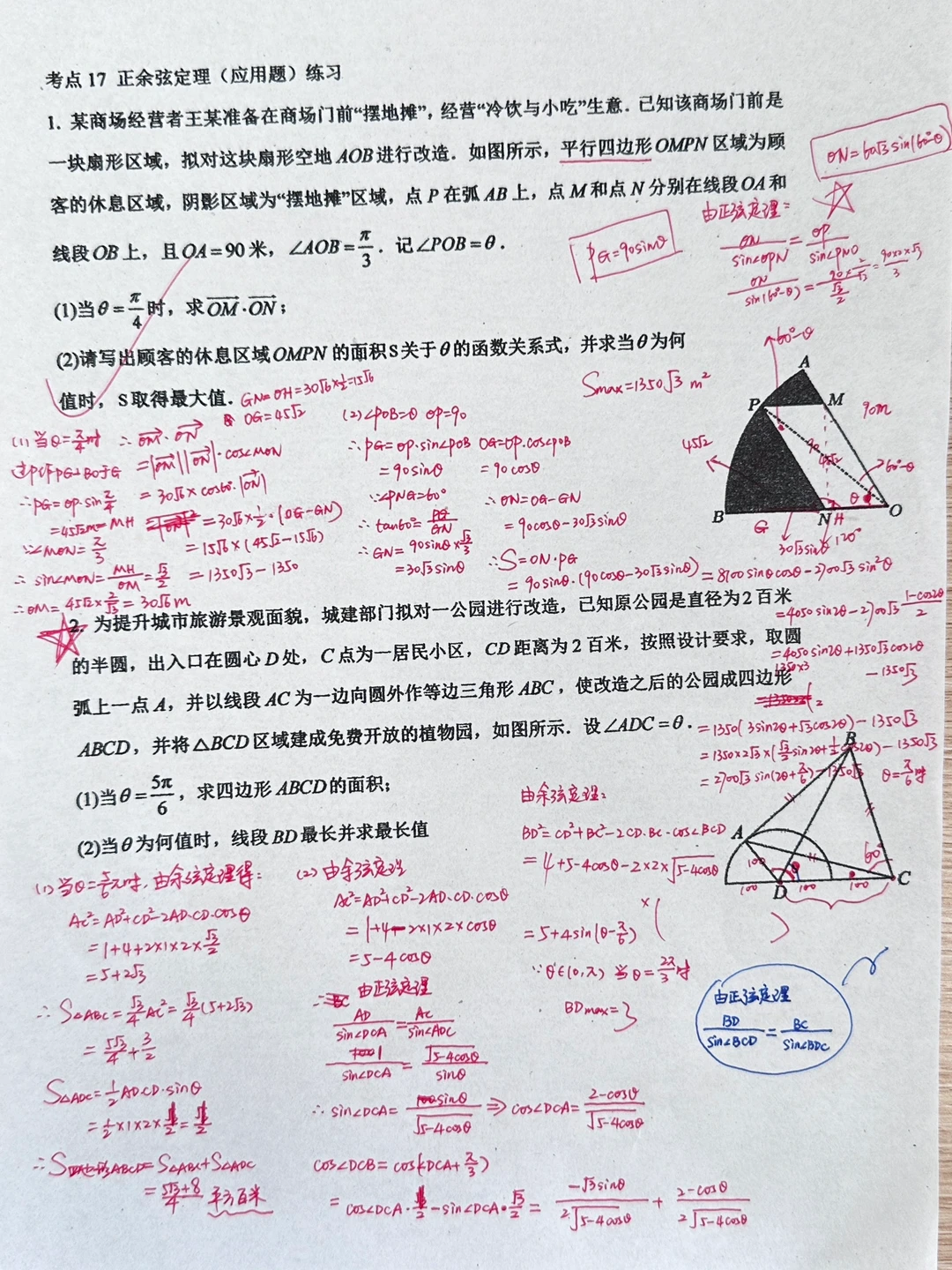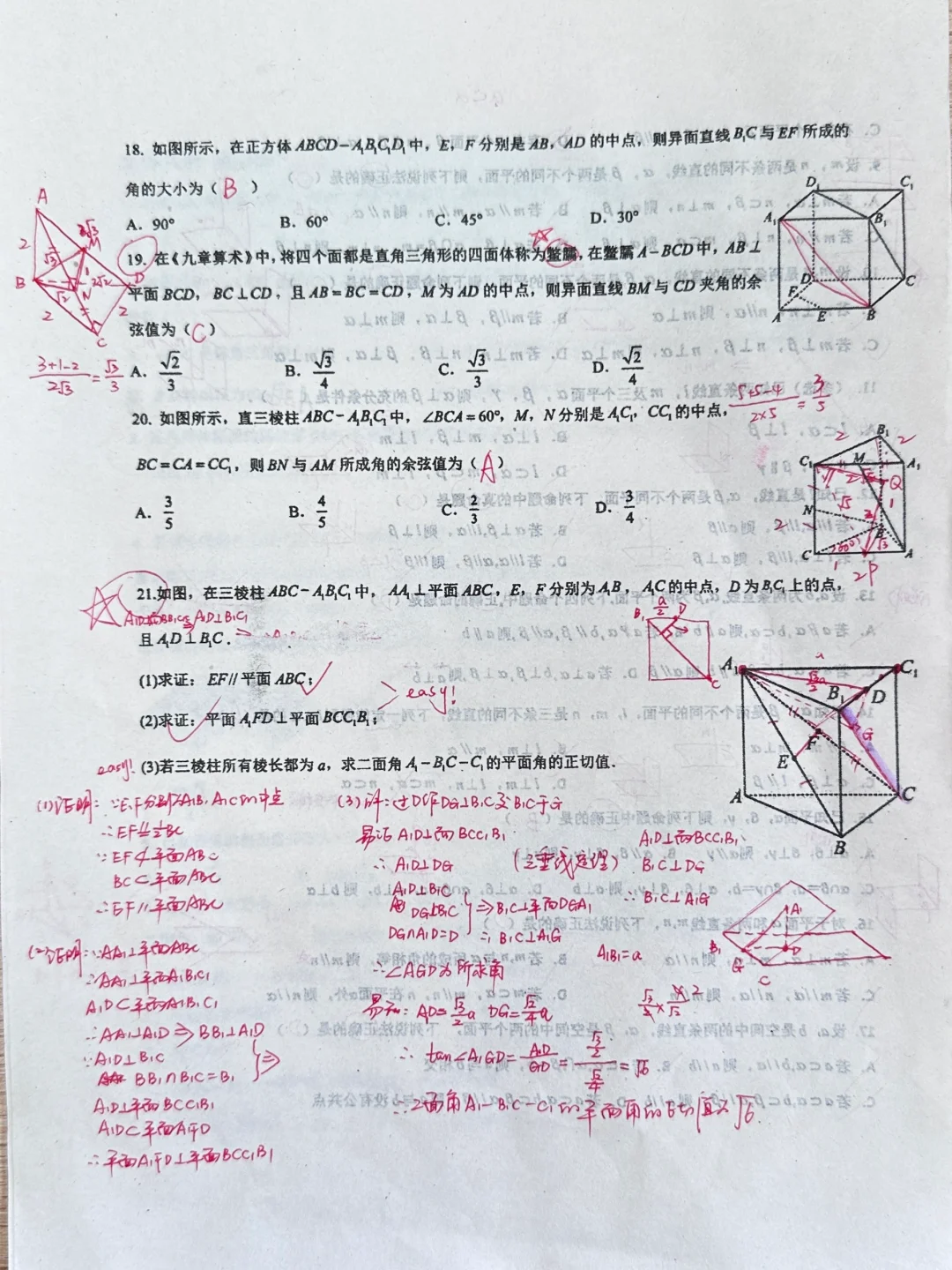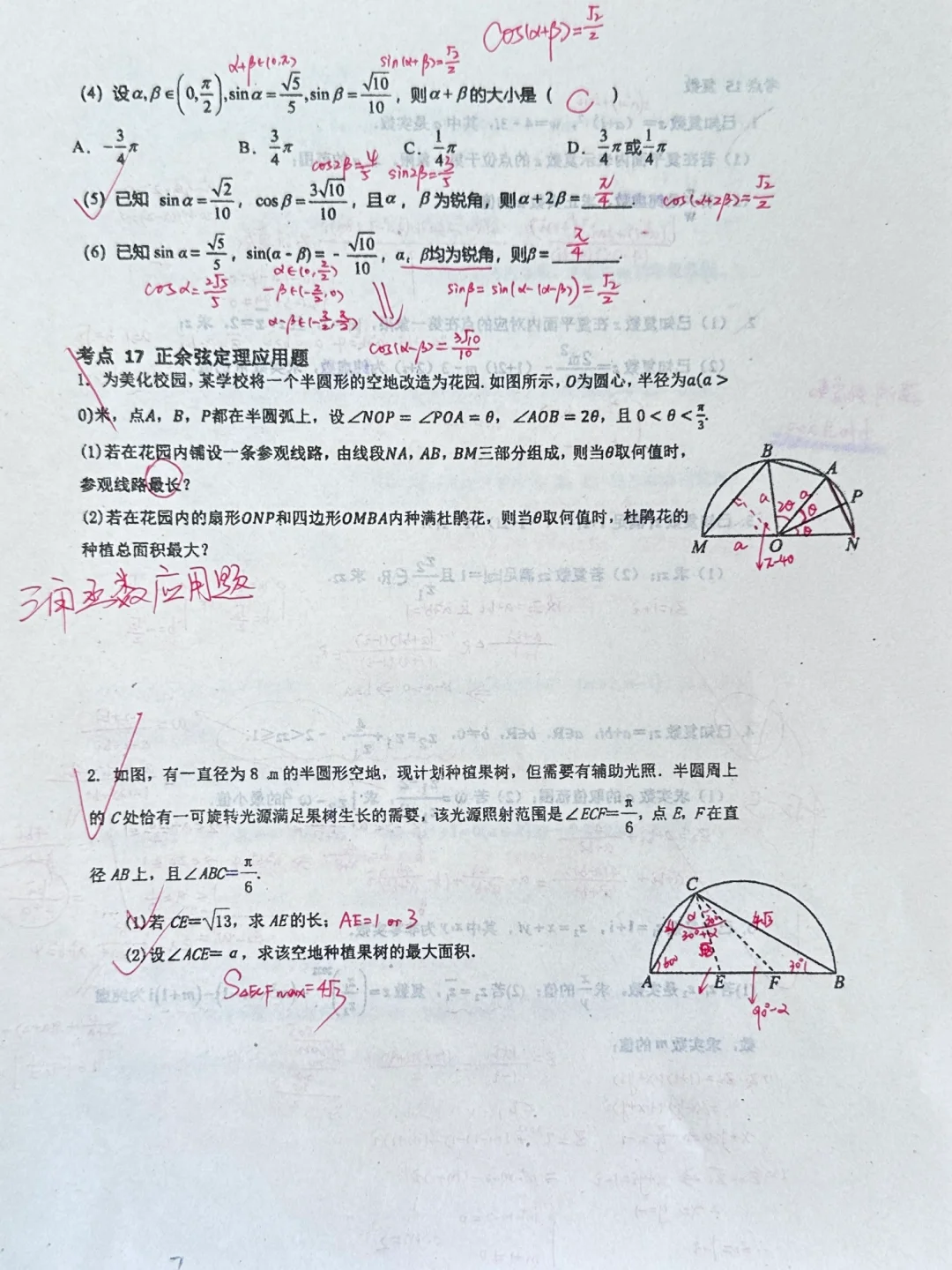 针对考点与期末模拟考试的情况,再次整理题目进行强化训练。 主要是立体几何、复数、三角恒等变换和正余弦定理这几个板块的知识。