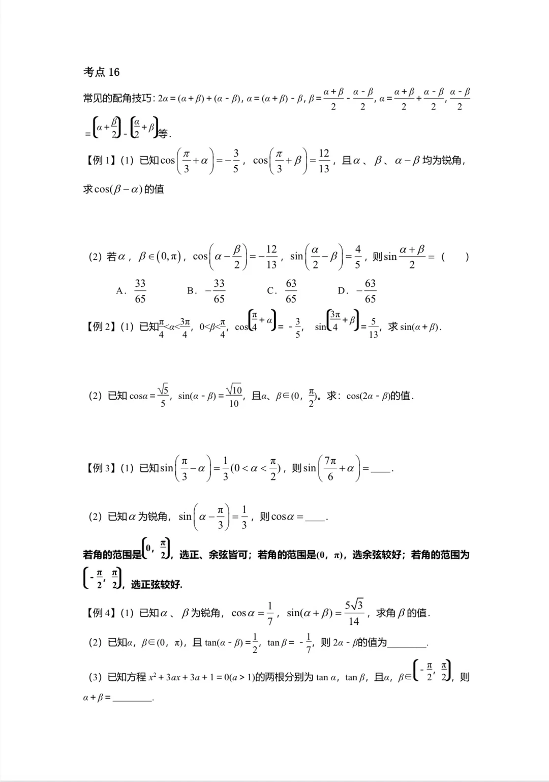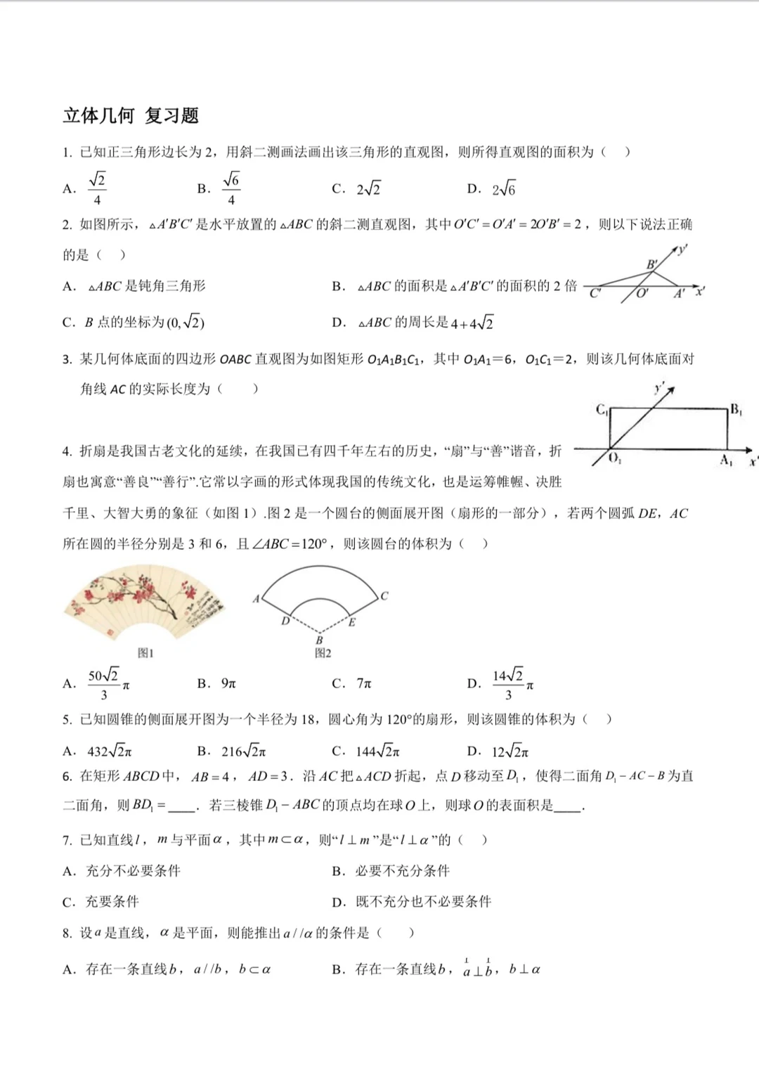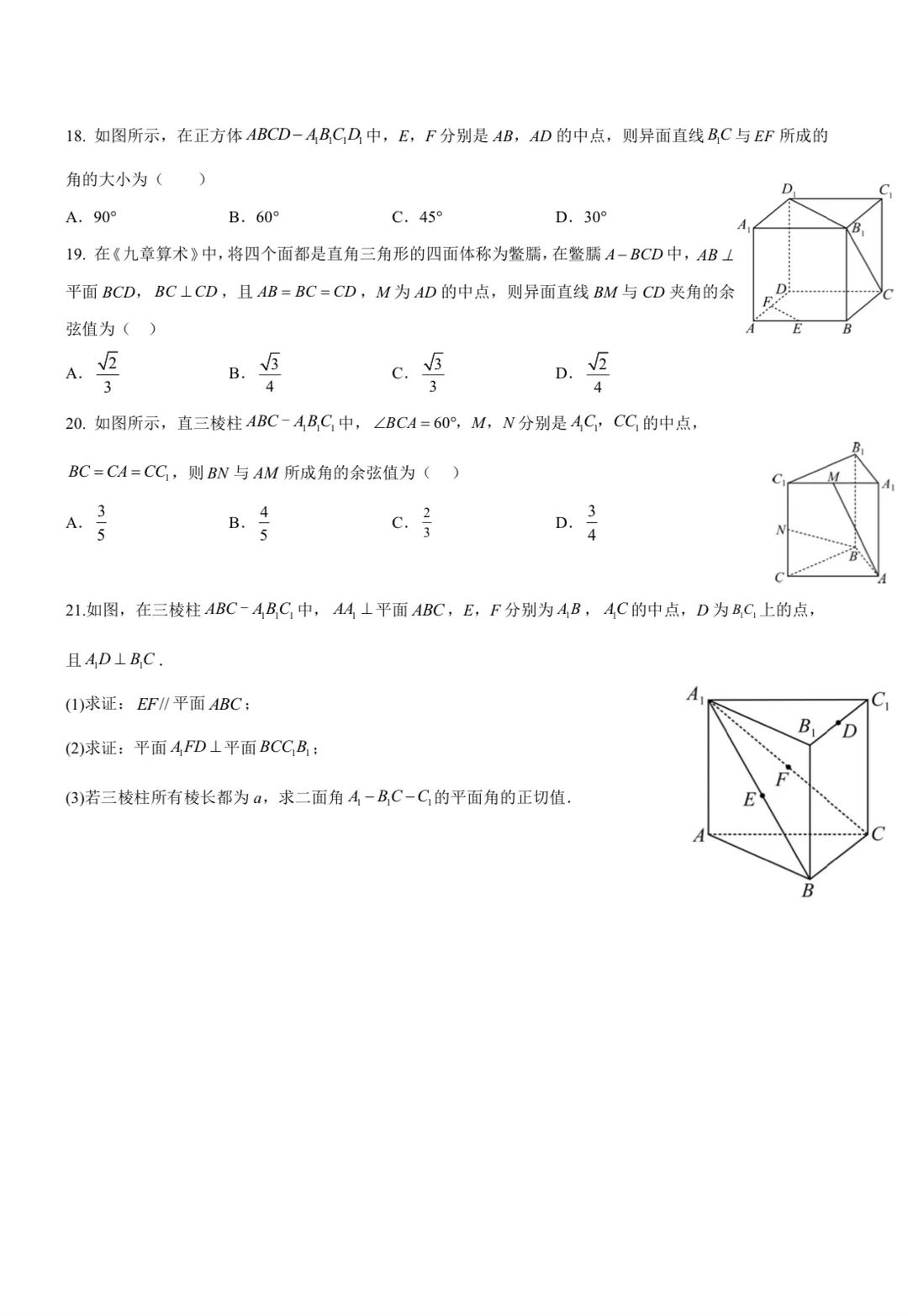 针对考点与期末模拟考试的情况,再次整理题目进行强化训练。 主要是立体几何、复数、三角恒等变换和正余弦定理这几个板块的知识。