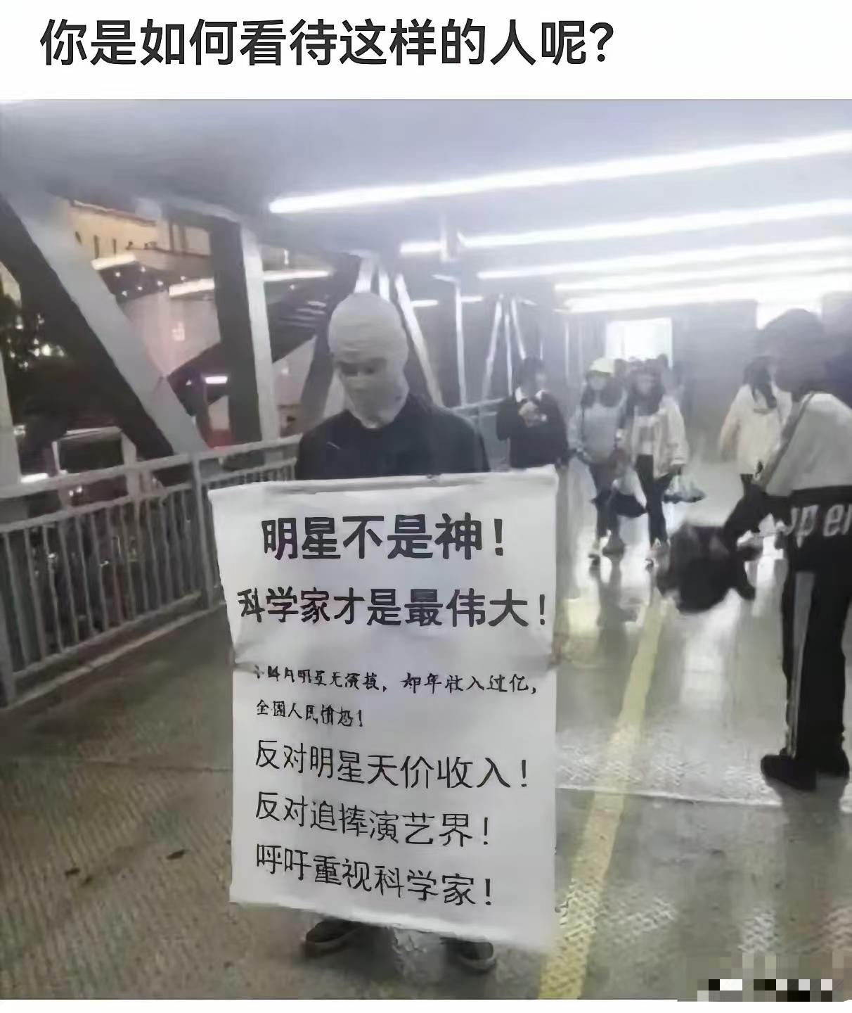 一定要这么极端吗?他其实只是觉得明星收入高不平衡而已,至于科学家高不高他不关心,只是对比一下。 科学家不是一种职业,是科研人员里面顶尖的那一波人,而每个行业顶尖那波人都不需要讨论收入。 什么明星什么科学家,劳动人民最光荣,医护人员,消防员,警察,教师,最伟大。 那么多靠明星赚钱的不是吗?一个明星能带动多少人,整个娱乐产业有多大?你以为全进明星口袋了? 其实就是科学家把大家搞失业的,发明了电商,APP,AI,谁是科学家?科学家怎么定义?谁又是明星?明星又怎么定义?