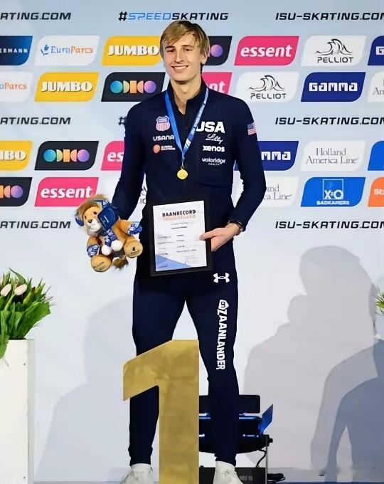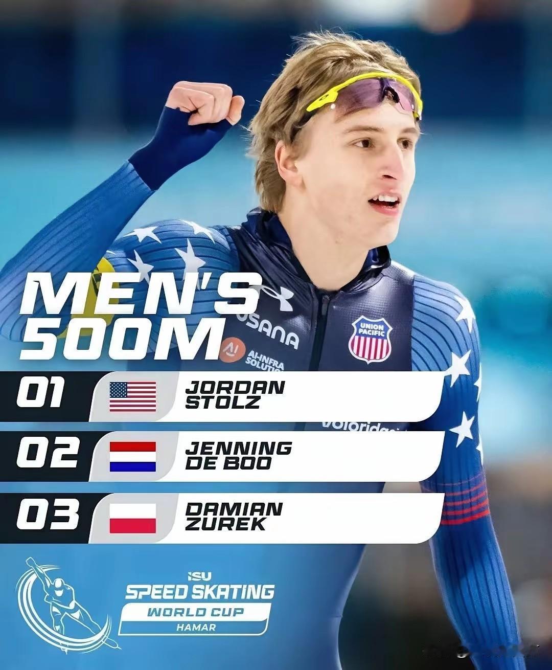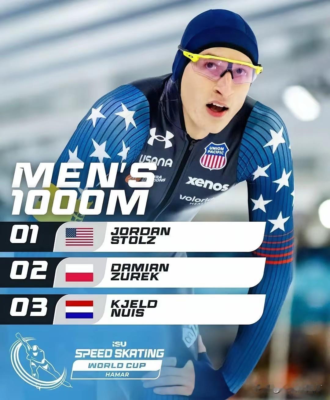 速度滑冰世界杯哈马尔站,美国名将乔丹·斯托尔兹创造了单站比赛独揽五金的奇迹,他不仅包揽了500米(2次)、1000米、1500米四个男子个人项目冠军,还与队友合作拿到男子集体出发项目金牌,至此,在四站世界杯豪取12金,还在两周内狂刷六项场地纪录。