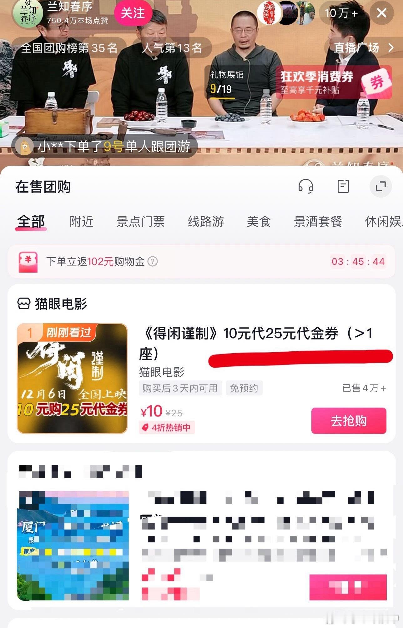 董宇辉直播间得闲谨制主创采访,有10元代25元电影票代金劵福利!在看吗 在看吗?好划算呢!购买后3天内核销可买周末的👍🏻电影得闲谨制